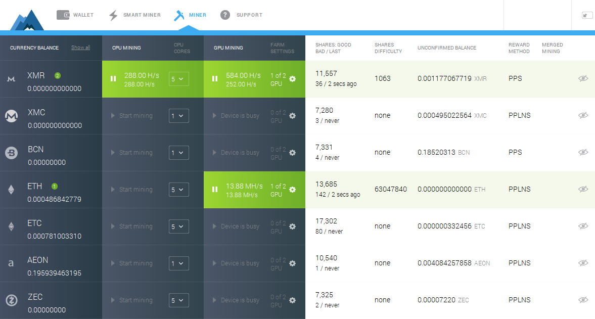 Minergate is the most convenient CPU/GPU mining app you can find nowadays. It supports Windows, Mac and Linux. Most interestingly, Minergate offers both GUI and Console versions for users. Of course, the GUI version has a more user-friendly interface so newbies are ready to start mining right after installing the app.