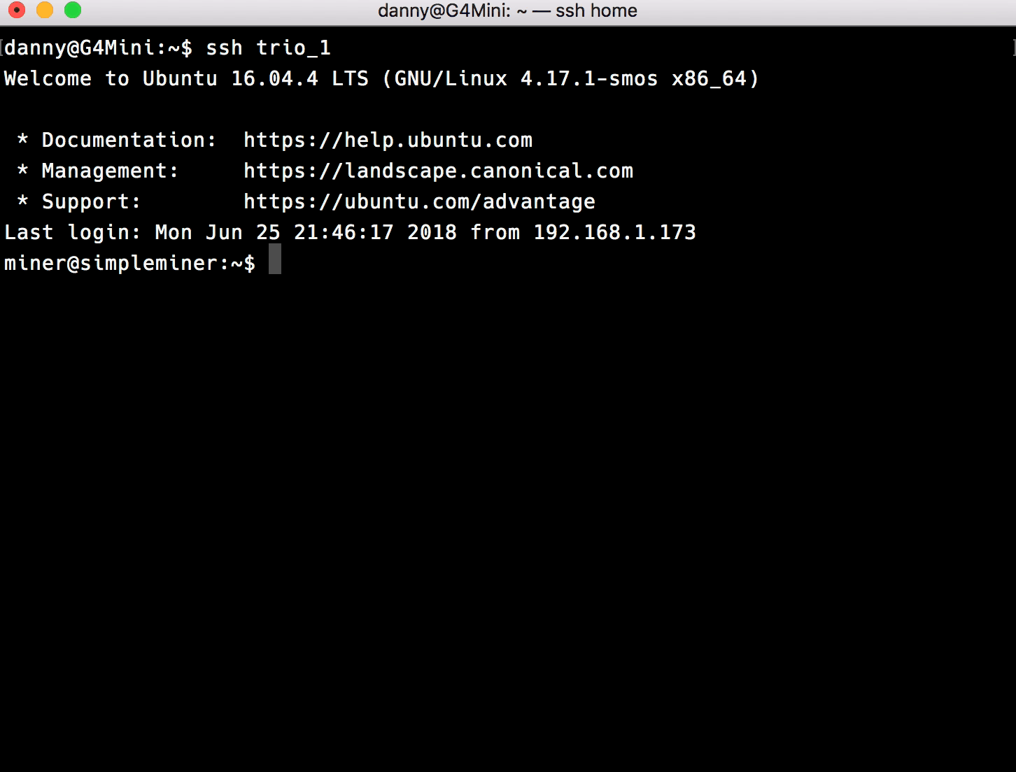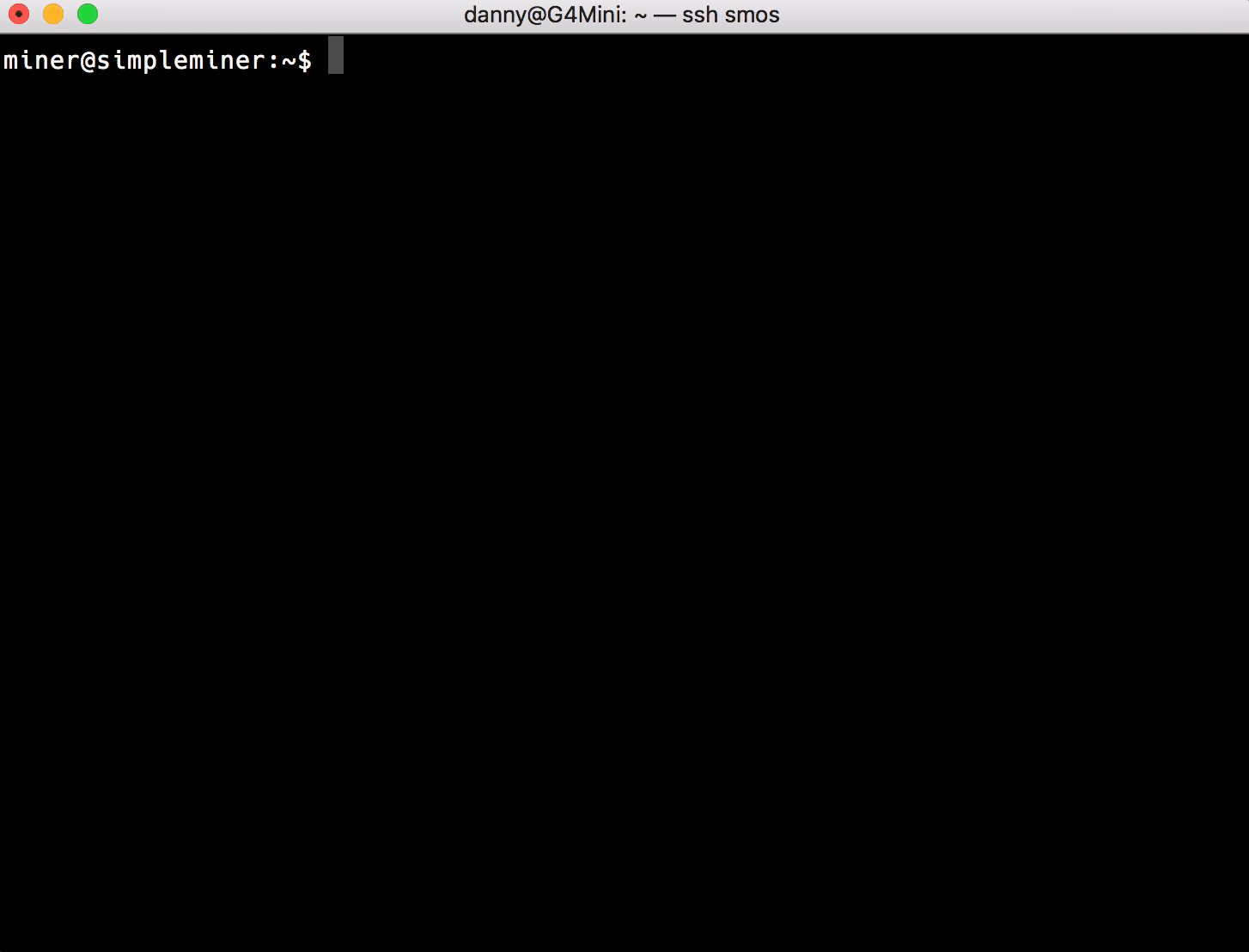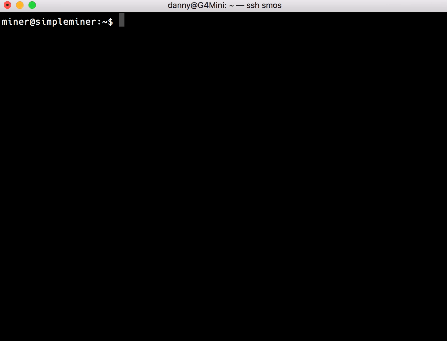 mineruser with your smOS email as the password (unless you changed the password already, then use that) via ssh. You will need the Terminal app on MacOS or PuTTY on Windows.The ~ means that you’re in the home directory for the current user, the $ means that you’re logged in as a normal user and not root (this is a good thing). If you see a you are root (in most cases, this is a bad thing).
