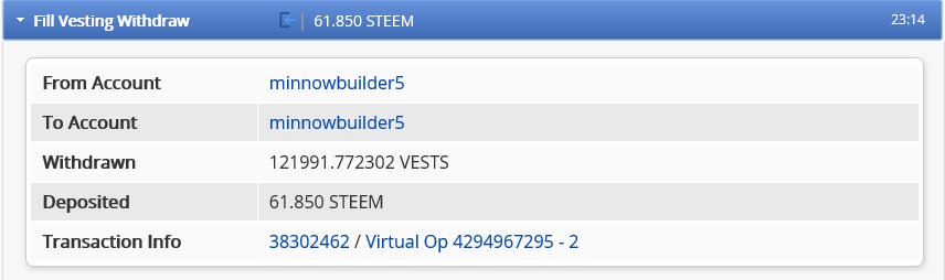 The exact amount of the power down in Steem is 61.825 for the second power down.