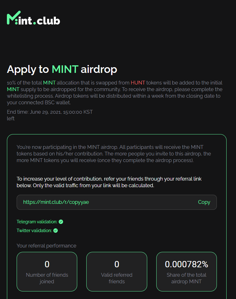 에어드랍 레퍼럴 링크 https://mint.club/r/copyyae