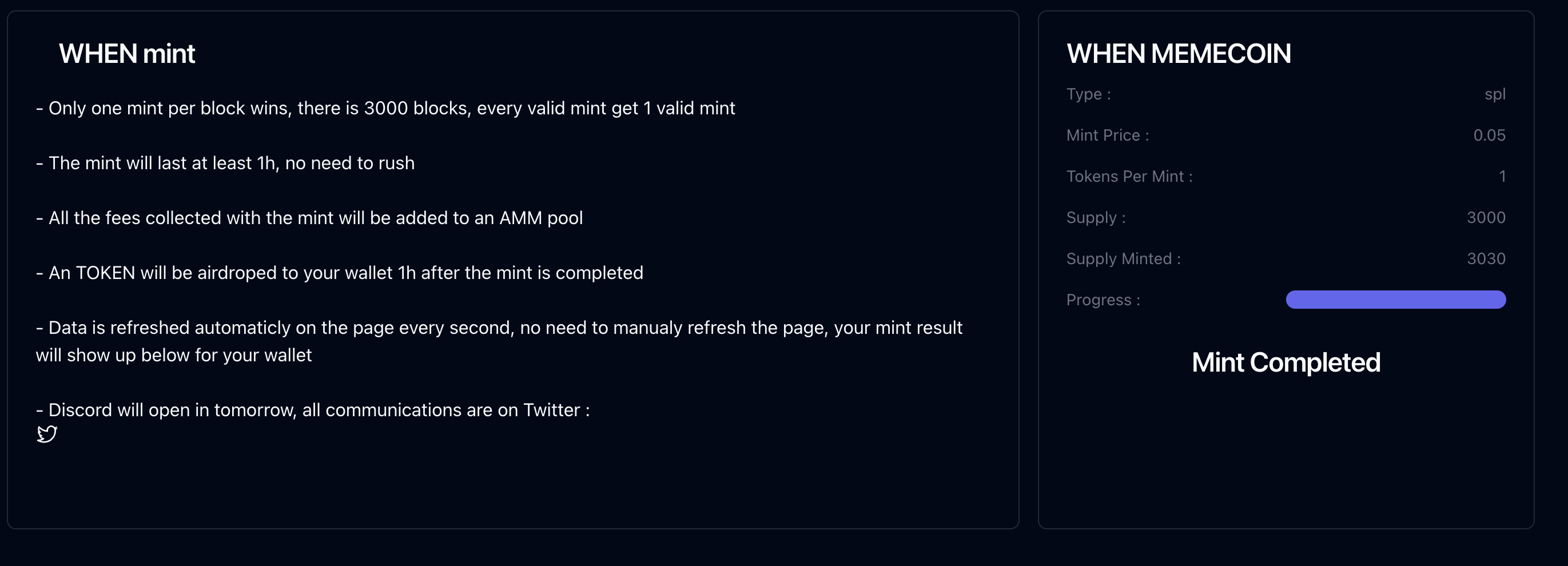 어제 밤에는 analysoor에서 출시한 WHEN코인을 민팅하려고 대기탔는데