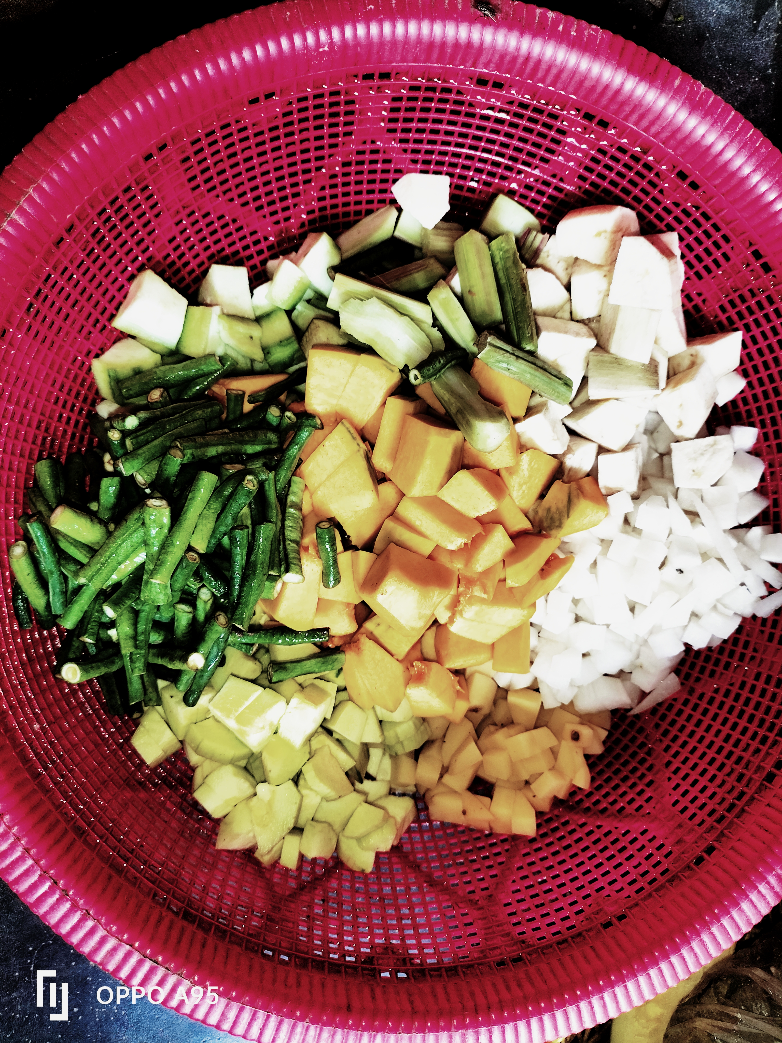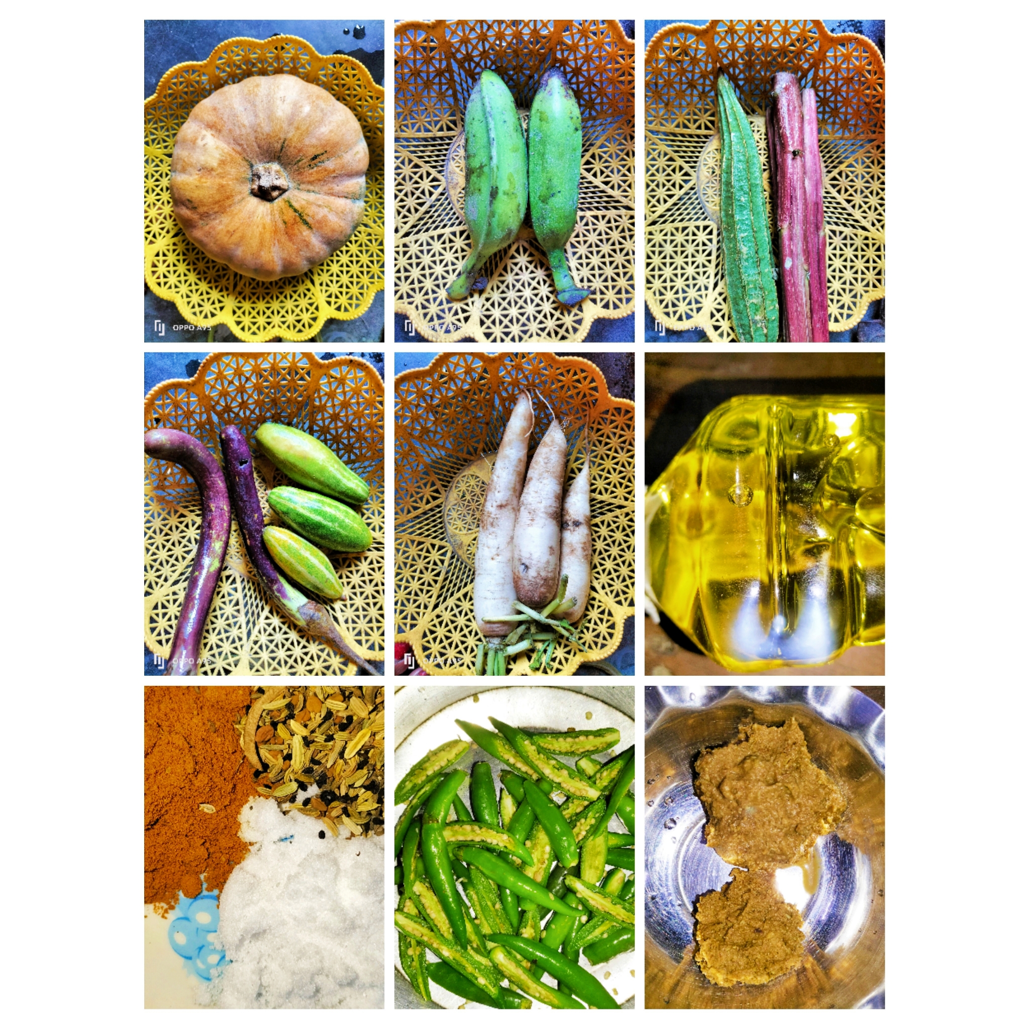 প্রথমে সব গুলো সবজি ছোট ছোট করে কেটে নিয়েছি। মসলা বেটে নিয়েছি।