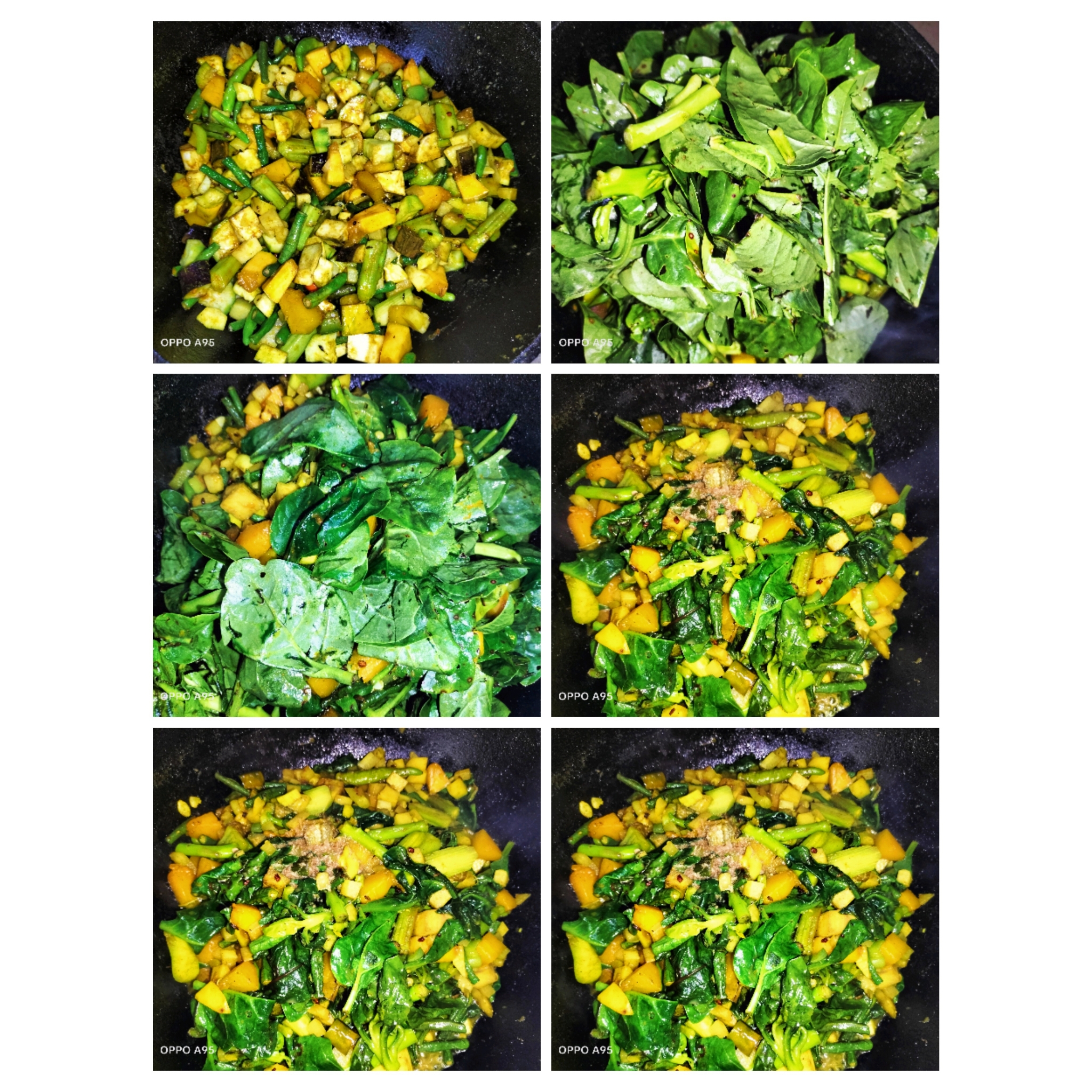 সিদ্ধ হওয়া সবজিতে আদাও জিরাবাটা দিয়ে মিশিয়ে নিয়েছি ও আবারও ভালো করে কষিয়ে নিয়েছি এবং নামিয়ে নিয়েছি পরিবেশের জন্য।