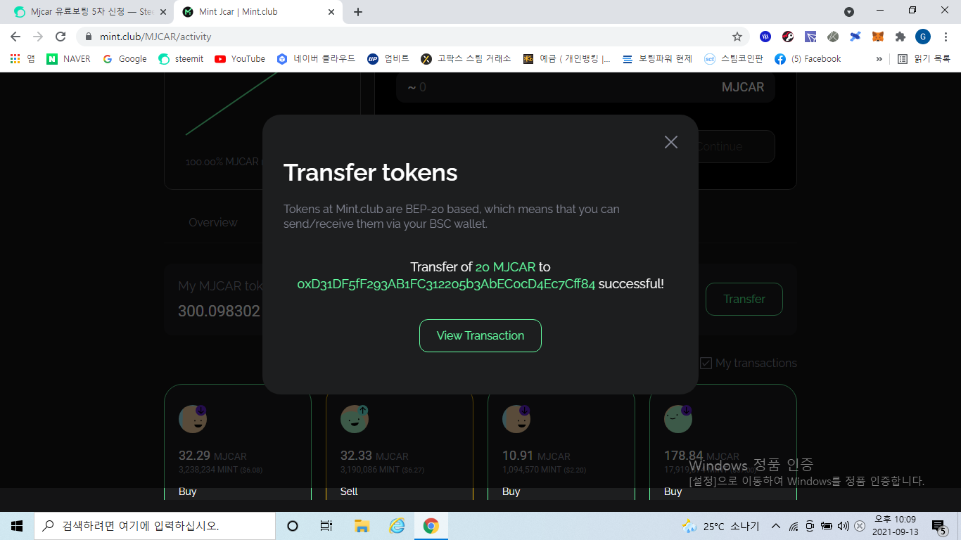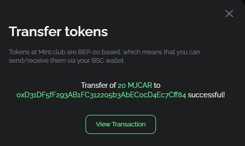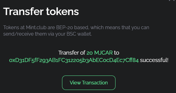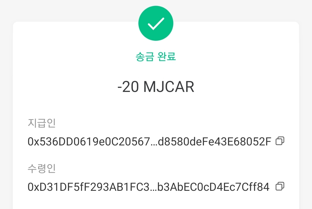 Mjcar토큰 20개를 전송한 뒤 이 포스팅에 댓글로 BSC 주소를 남겨주세요.