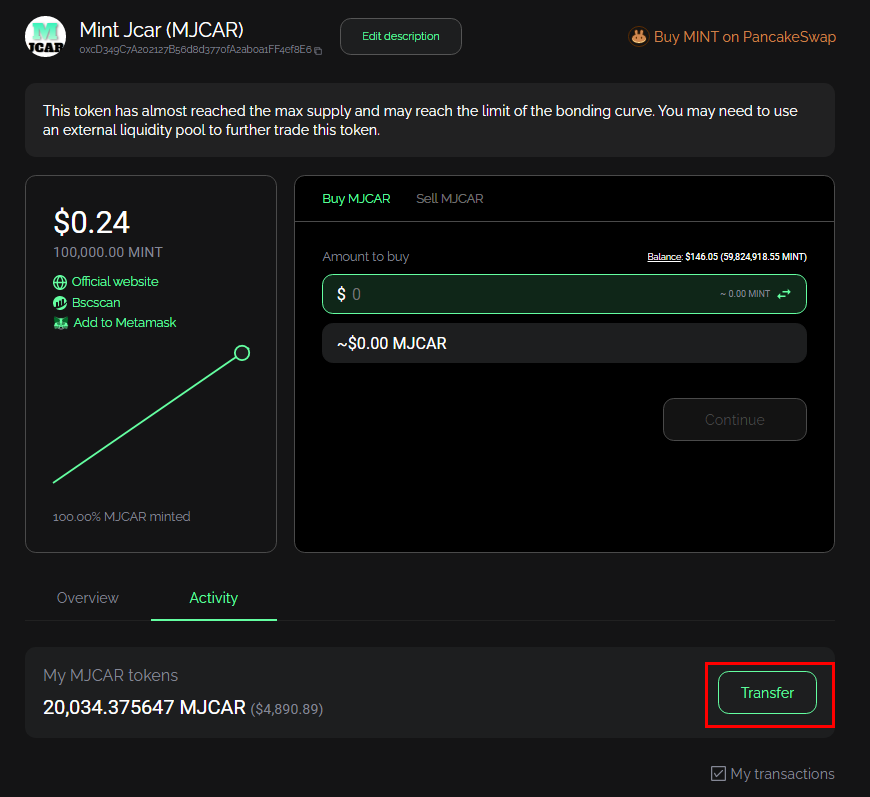 급하게 필요하신 경우, 팬케잌 스왑에 MINT/MJCAR 풀에 Mjcar가 공급되어 있습니다.