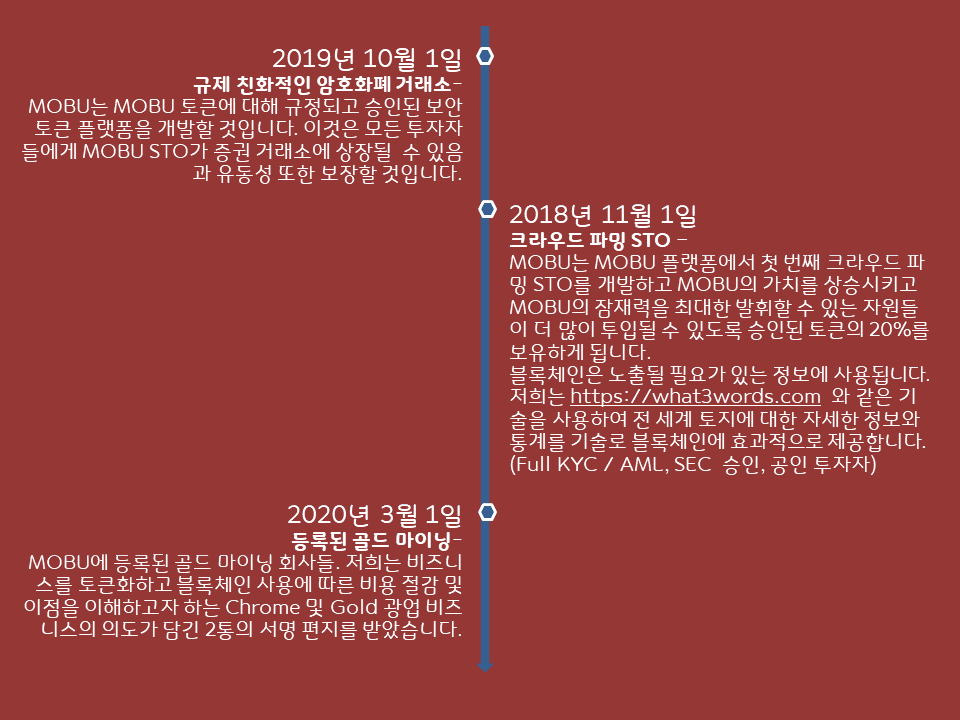 MOBU는 ICO에 에스크로(escro) 서비스의 새로운 혁신적인 방법을 소개합니다. MOBU는 독특한 MOB20 표준 프로토콜을 구현하는 생태계로 KOC / AML, 독특한 새로운 유형의 에스크로 등 SEC 규정을 준수하는 보다 경쟁력 있는 ICO 서비스 가격 환경을 만들기 위해 투자자와 ICO 발행자를 보호합니다. 이렇게 투자자는 ICO 발급 기관이 자신의 로드맵이나 목표를 준수하지 않는 경우 비례 기준으로 메인 세일 이후 ICO를 종료할 수 있습니다.