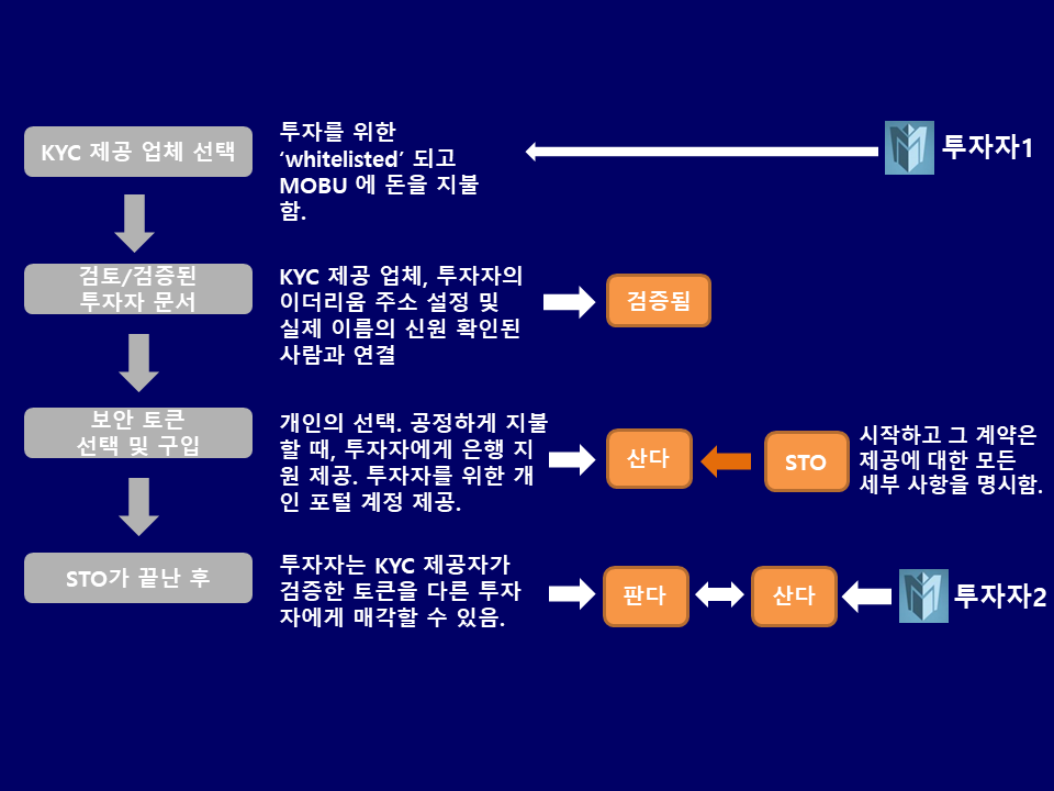 ● MOBU는 법적 제공 업체, 스마트 계약 개발 업체, 에스크로 업체, KYC 제공 업체 등 대상으로 심사 받는 매끄러운 프로세스를 갖춘 생태계입니다.