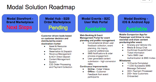 Our initial offering is focused on providing consumers a reservation platform to connect and communicate with transportation companies in the industry. Closing the gap on communication and booking time helps both the consumer and the company tremendously.