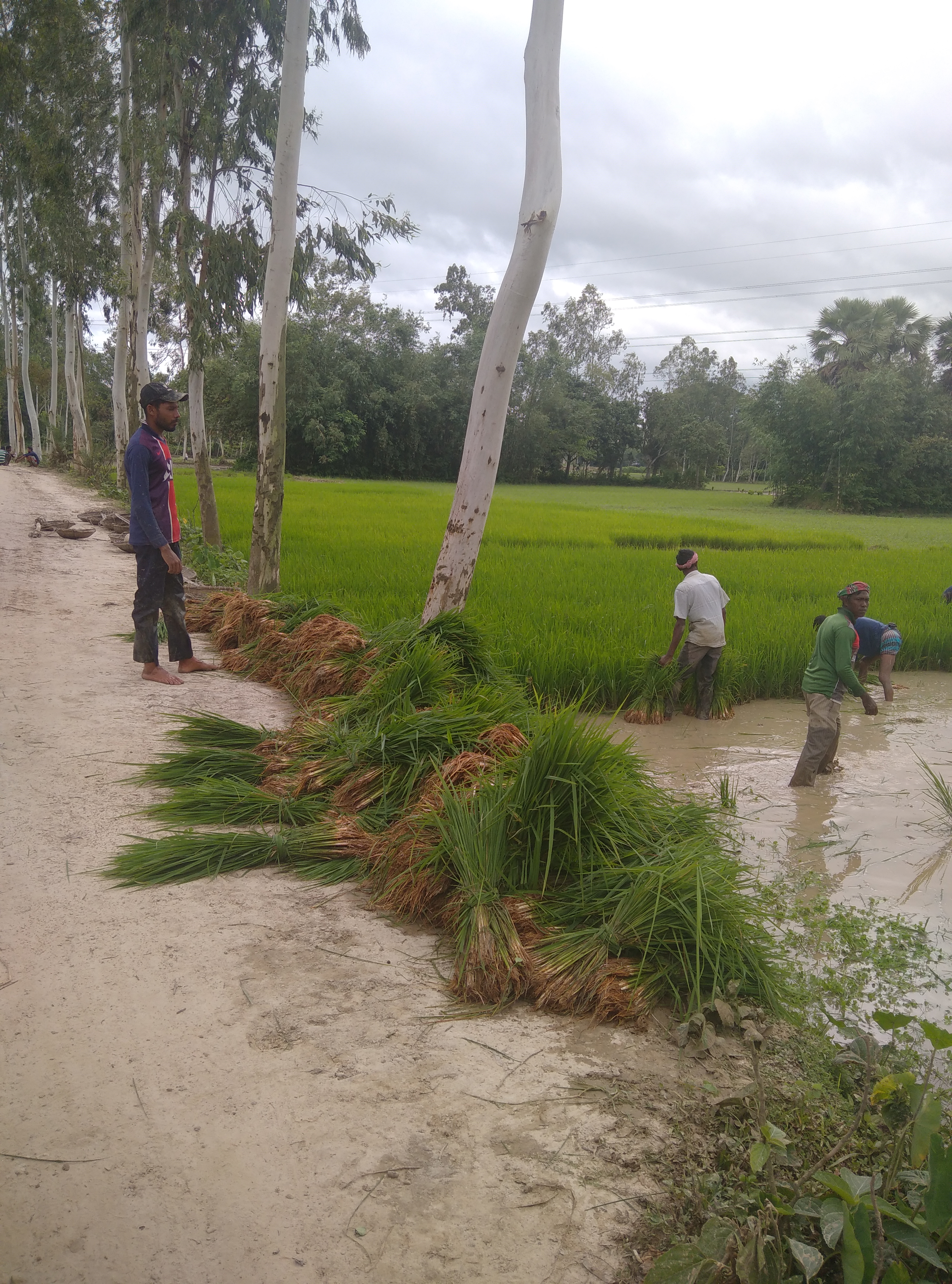 সকালবেলা যখন আমি হাঁটতে বের হয়েছিলাম, ঠিক তখনই আমার এই দৃশ্যগুলো চোখে পড়েছে। সেই ভোরবেলা এই ভদ্রলোকেরা ঘুম থেকে উঠে একদম কাঁদাপানির ভিতরে নিজেকে ব্যস্ত করে ফেলেছে। চারা গুলো সংগ্রহ করার জন্য এবং সেই চারাগুলো তারা সংগ্রহ করে, তারা যে জমিগুলো একদম ভালো ভাবে প্রস্তুত করেছে সেখানে তারা রোপণ করবে। যাইহোক দিনভর তাদের এই ভাবেই কাজ চলবে এবং এইভাবে একটা সময় অপেক্ষা করবে, তারা মাঠ ভরা সবুজ ফসল দেখার জন্য।