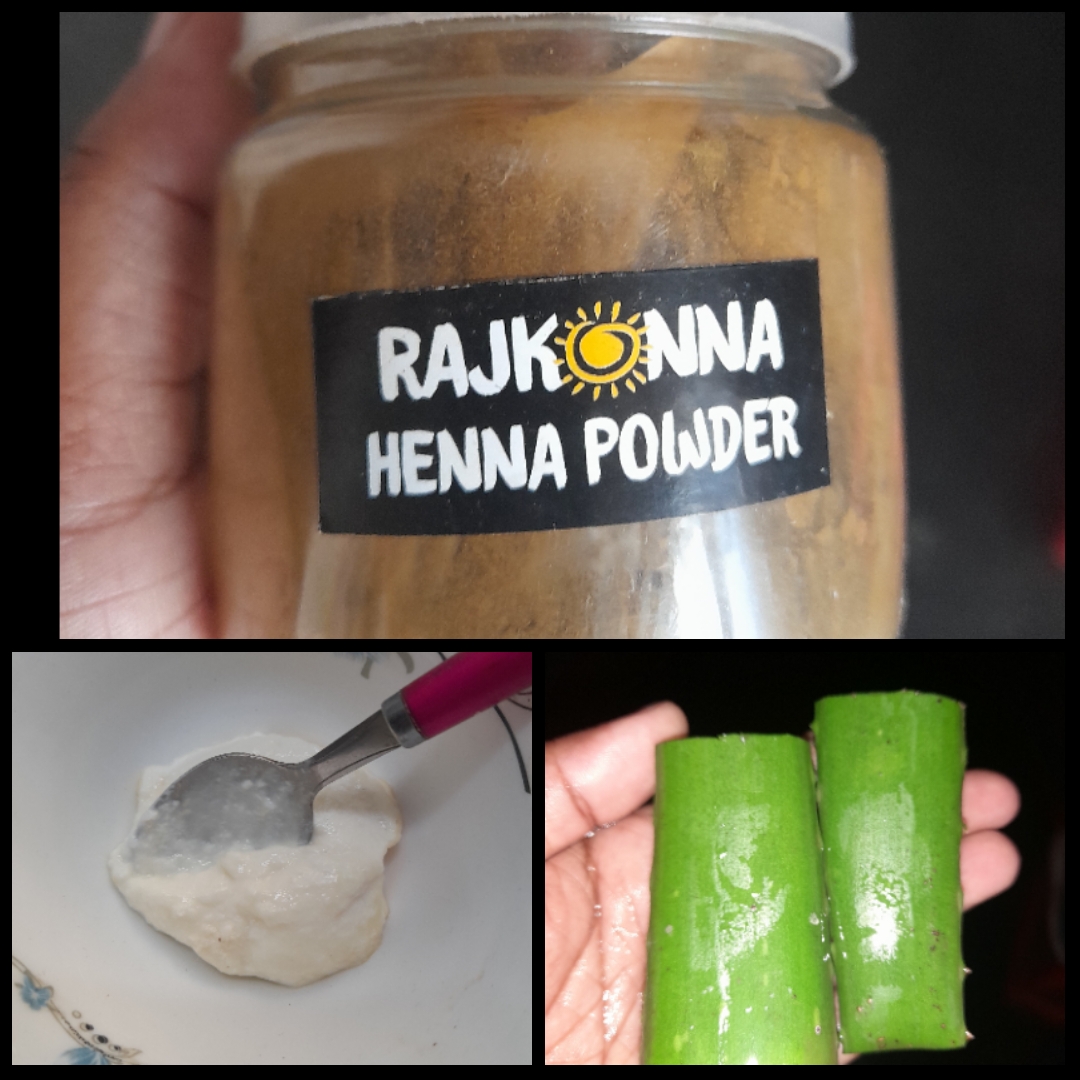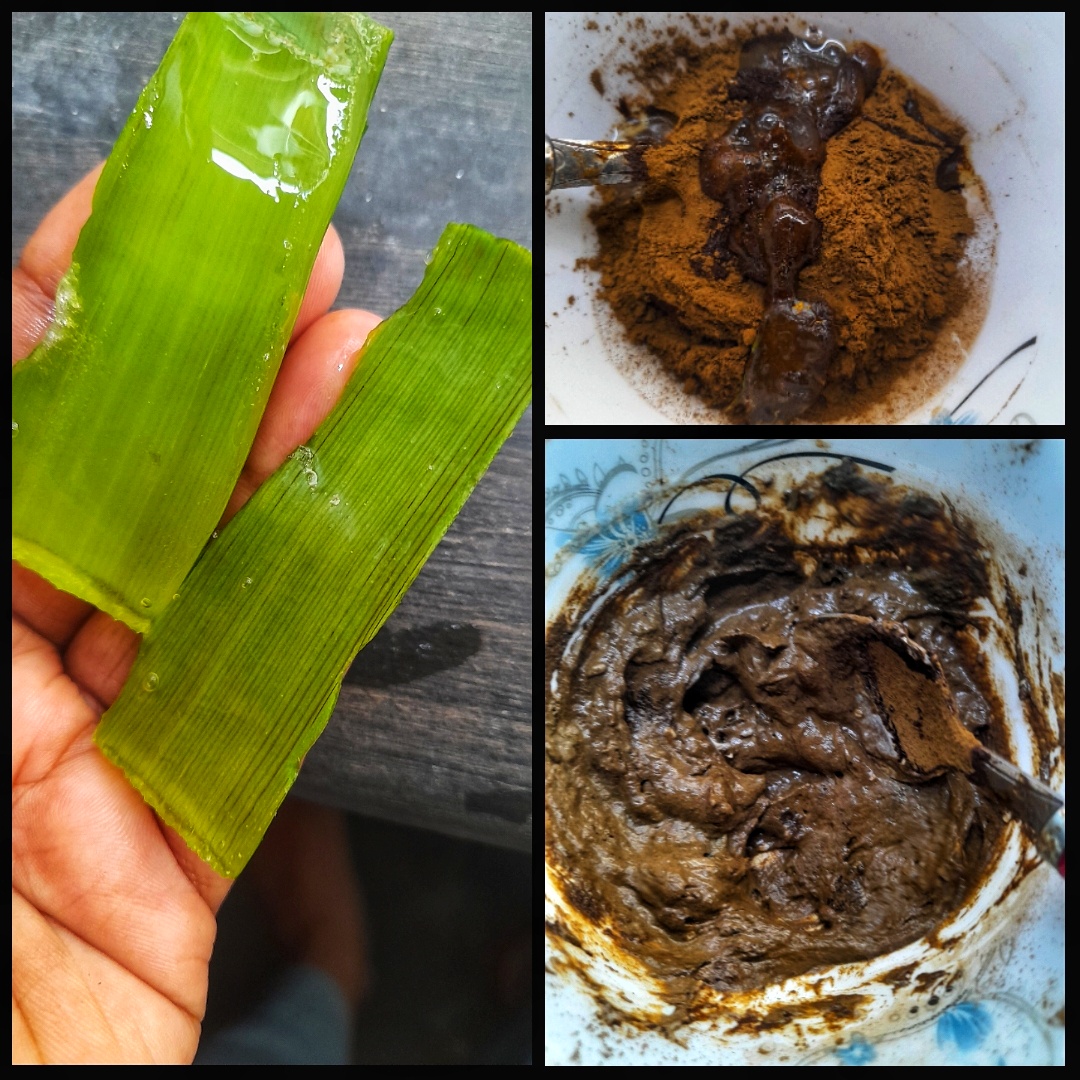 এ পর্যায়ে অ্যালোভেরা থেকে ভালোভাবে ছুরির সাহায্যে জেল বের করে নিয়েছি। এরপর তা হেনা পাউডার এবং টক দইয়ের সাথে মিশিয়ে নিয়েছি।