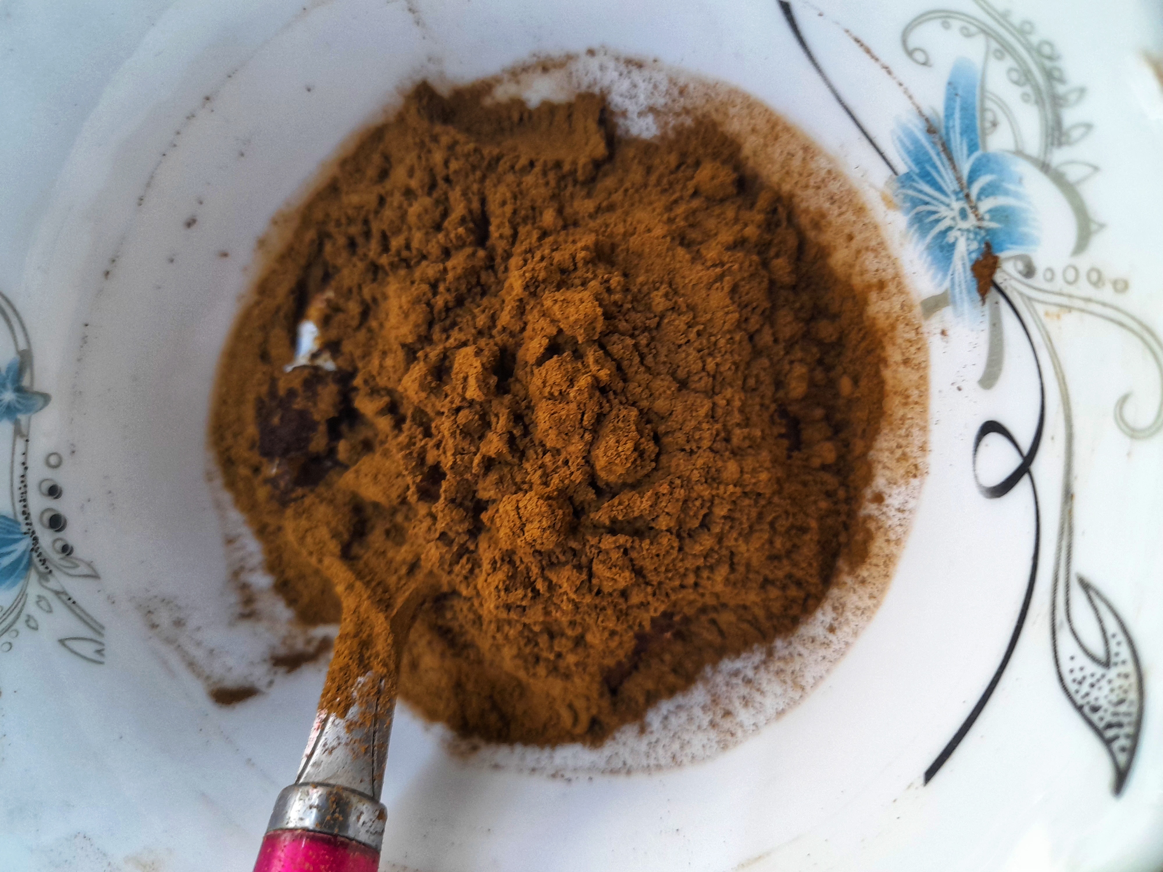 এবার টক দইয়ের মধ্যে তিন চা চামচ পরিমাণ রাজকন্যা হেনা পাউডার গুঁড়া নিয়েছি।