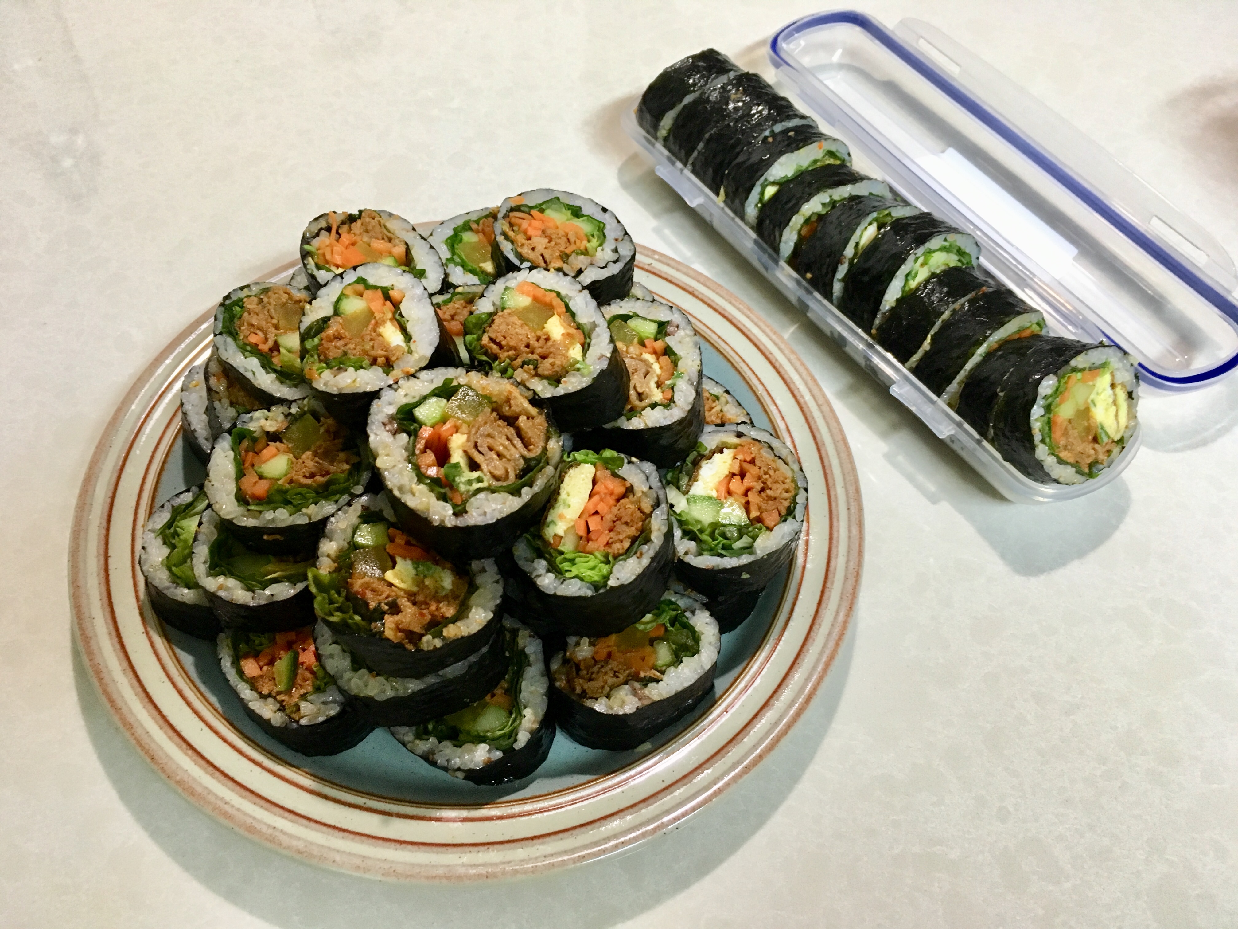 이김밥을 한번하면 양이 엄청납니다 ㅎ 이건 제육쌈김밥입니다 ㅋㅋ
