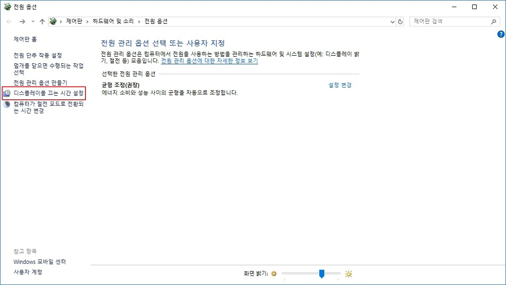 이 부분 또한 전원을 관리하는 차원이기 때문에 컴퓨터에서 사용할 절전 및 디스플레이 설정을 선택할 수 있는 것입니다.
