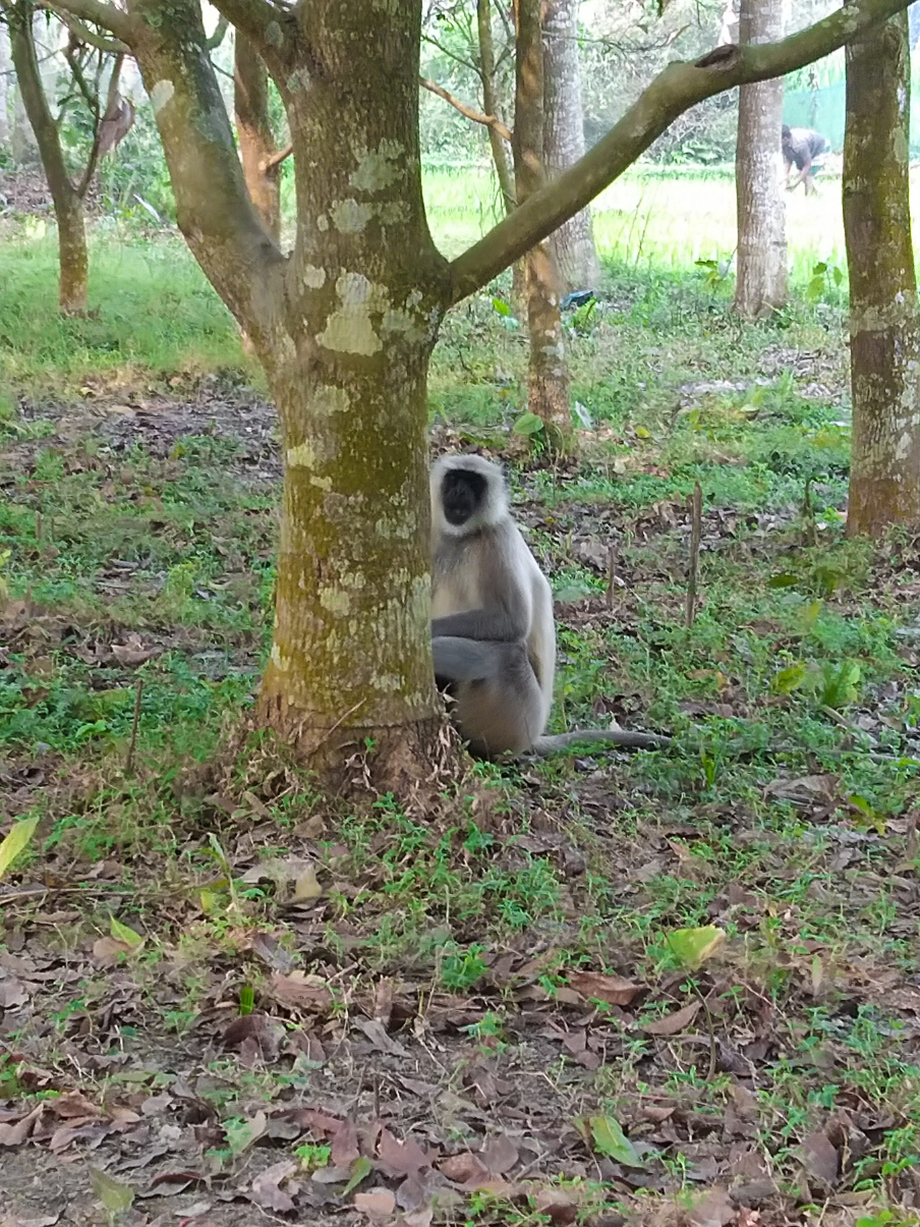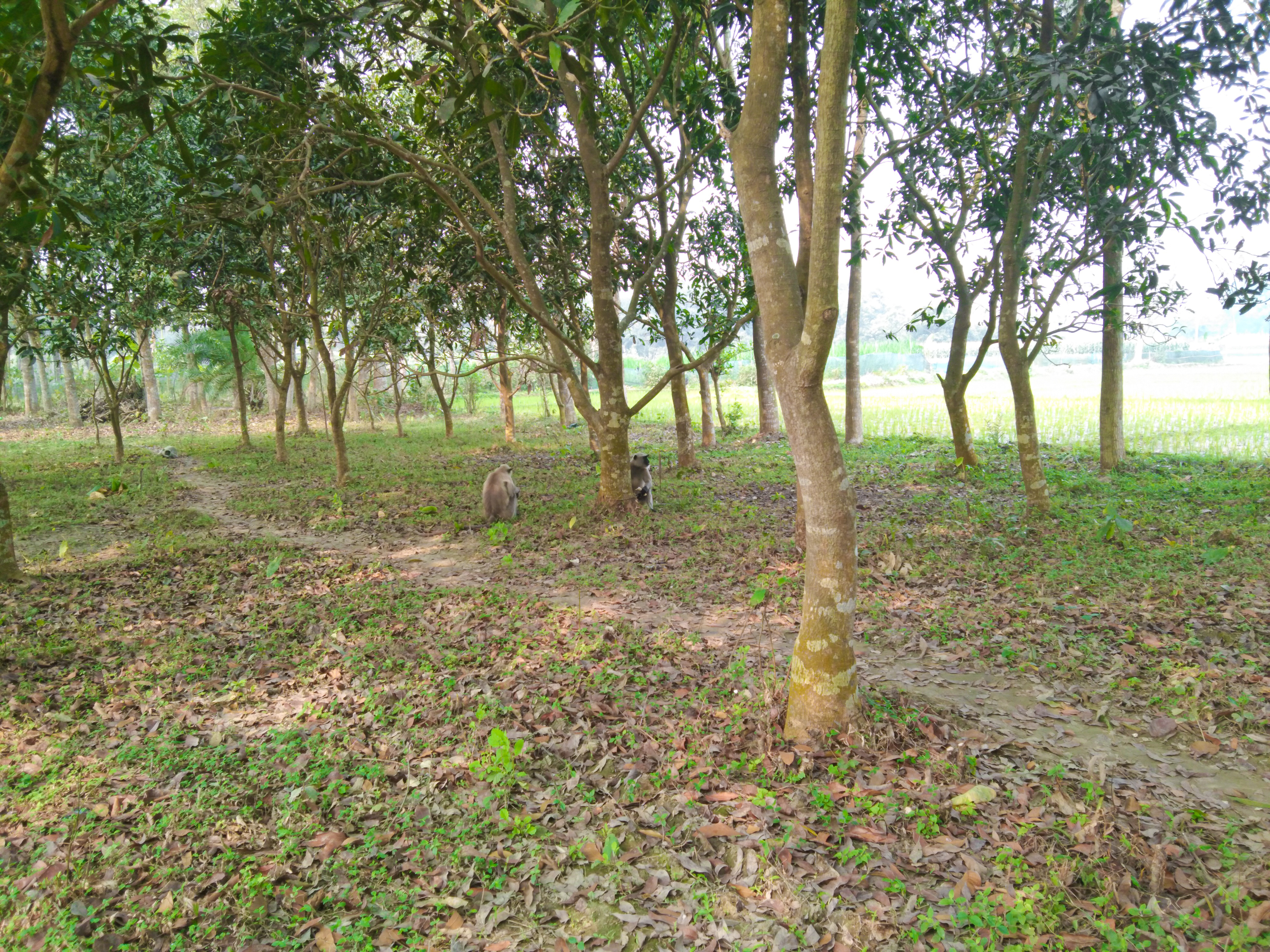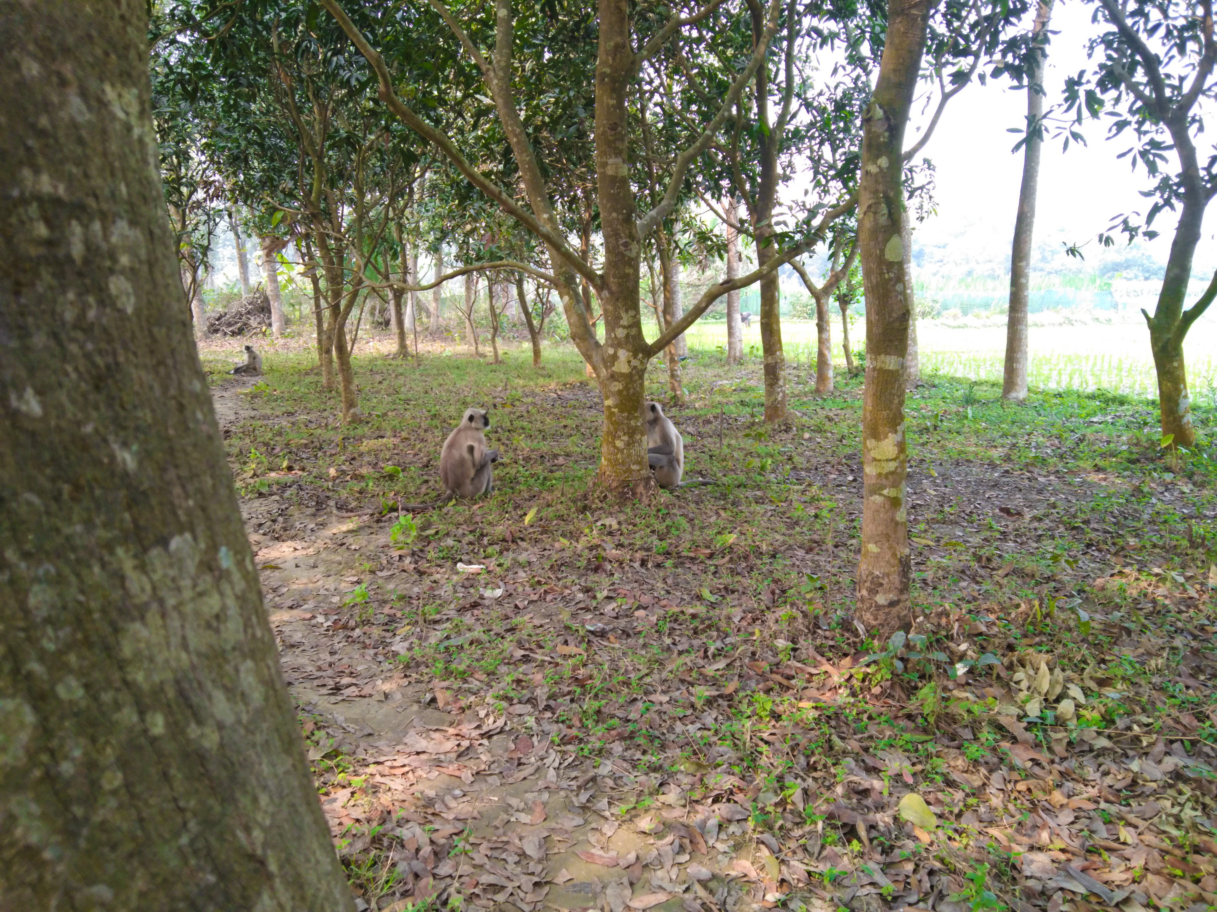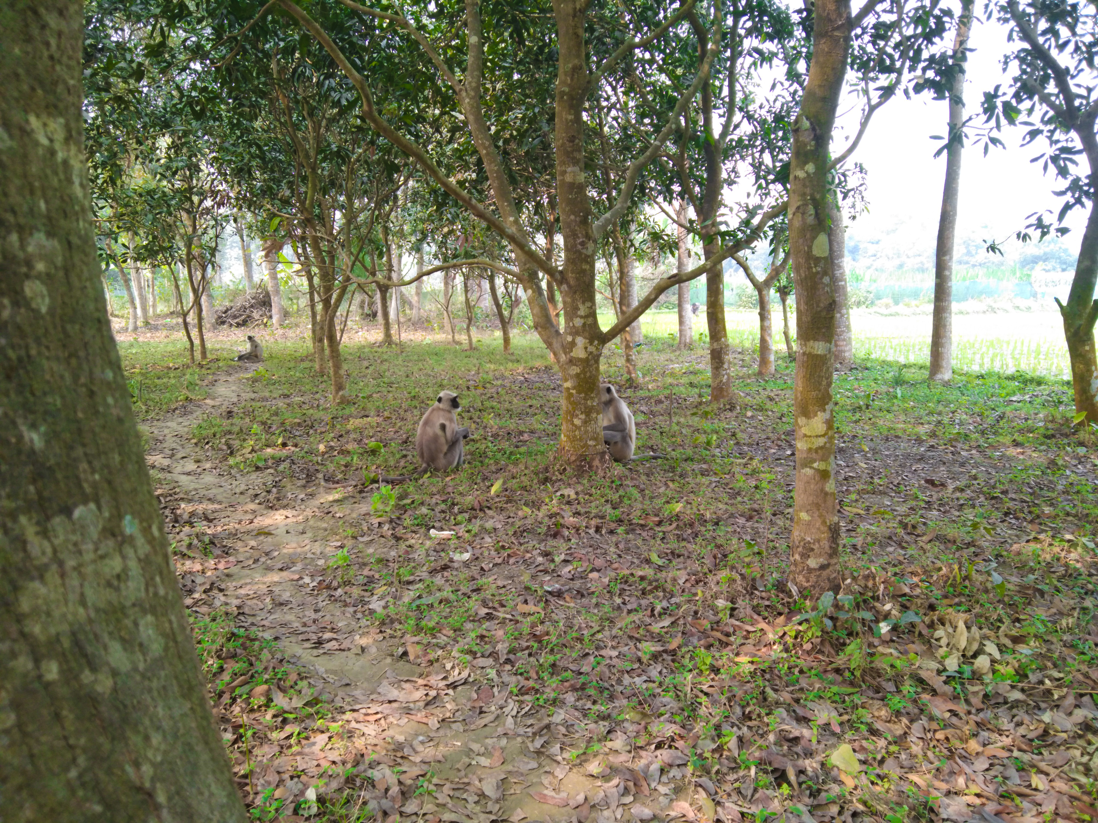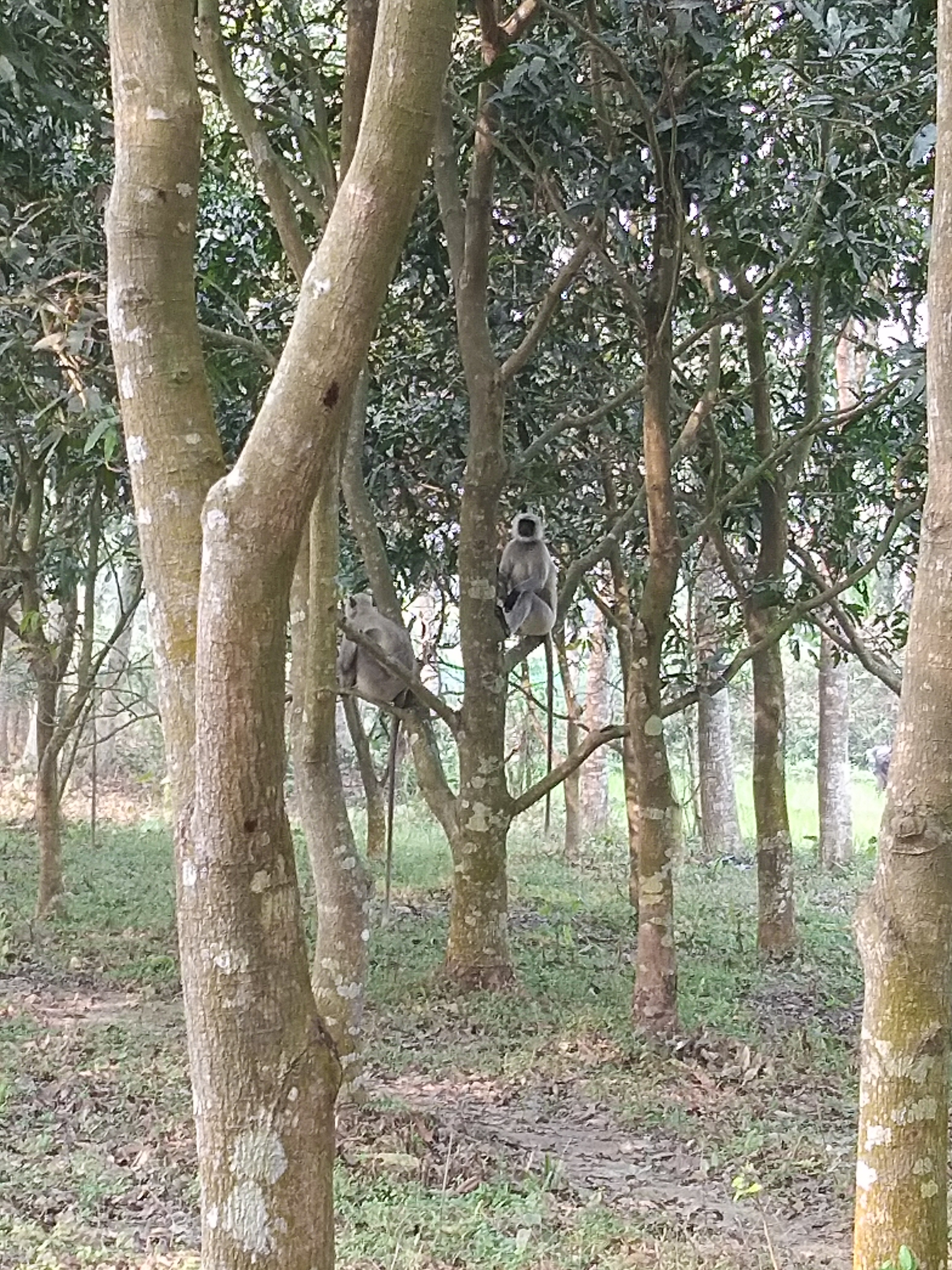 যাইহোক তারপর দেখলাম হনুমান গুলো দৌড়াতে দৌড়াতে একটা আম বাগানের মধ্যে চলে গেল। এবং দেখি দুইটা অনুমান আম গাছের উপর বসে আছে এবং আর একটা হনুমান দূরে বসে আছে। তখন আমি দূর থেকে জুম করে হনুমান গুলোর কয়েকটা ছবি তুলে নিয়েছিলাম। যাইহোক তখন আমাদের পাশের বাড়ির একটা ছেলে সাজ্জাদ ও বলছে যায় বাড়ি থেকে কয়েকটা রুটি নিয়ে আসি হনুমানকে খাওয়াবো। তো দেখলাম ও দৌড়াতে দৌড়াতে গিয়ে বাড়ি থেকে তিনটা হনুমানের জন্য তিনটা রুটি নিয়ে চলে এসেছে।