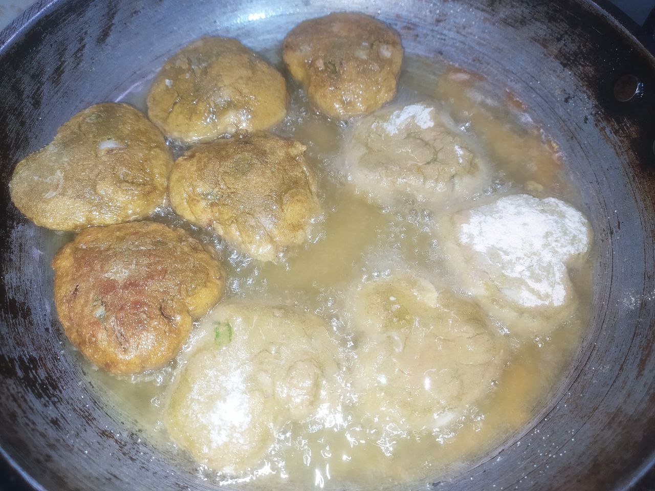 তারপর চুলার মধ্যে একটি কড়াই বসিয়ে তাতে পরিমাণ মতো তেল দিয়ে দিলাম। তেল যখন ভালোভাবে গরম হয়ে আসলো, তখন আমি ধীরে ধীরে আমার বানানো মাছের বড়া গুলো তেলের মধ্যে ছেড়ে দিলাম। তারপর আগুনের আচ কিছুটা বাড়িয়ে দিলাম।