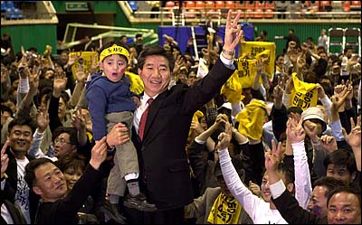 지역주의 타파를 위해 노무현 대통이 등장했습니다.