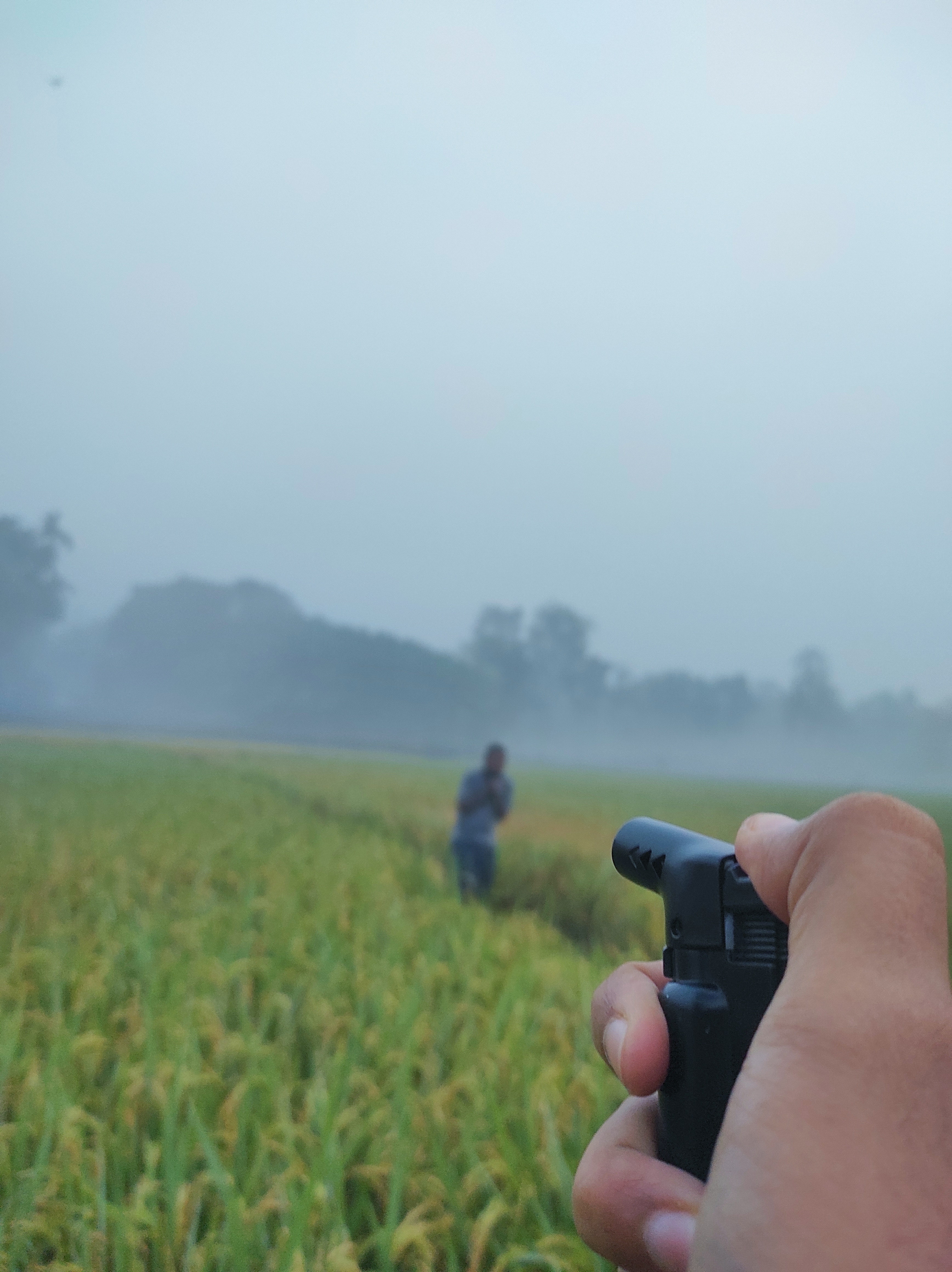 খুলায় পৌঁছানোর আগেই আরো একজনকে ফোন দিলাম। তাকেও আসতে বললাম দ্রুত। এরপর আমরা খুলাতে গিয়ে পৌছালাম। গিয়ে দেখি কথামতো ভাগ্নে আগেই এসে অপেক্ষা করছে। তখন আমাদের মনে পড়লো আমরা আসার সময় একটা জগ না নিয়ে চলে এসেছি। এরপর আরো একটা ছোট ভাইকে ফোন দিলাম। সে তখনও ঘুমাচ্ছিল। কিন্তু তাকে দ্রুত একটি জগ আর কয়েকটি লেবুর পাতা নিয়ে চলে আসতে বললাম।