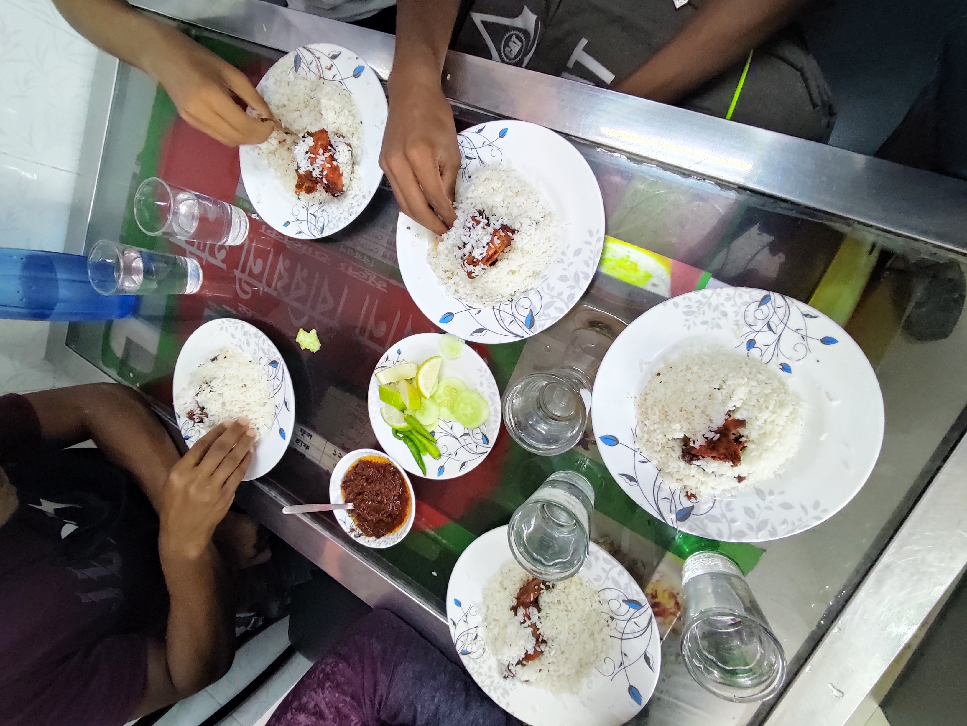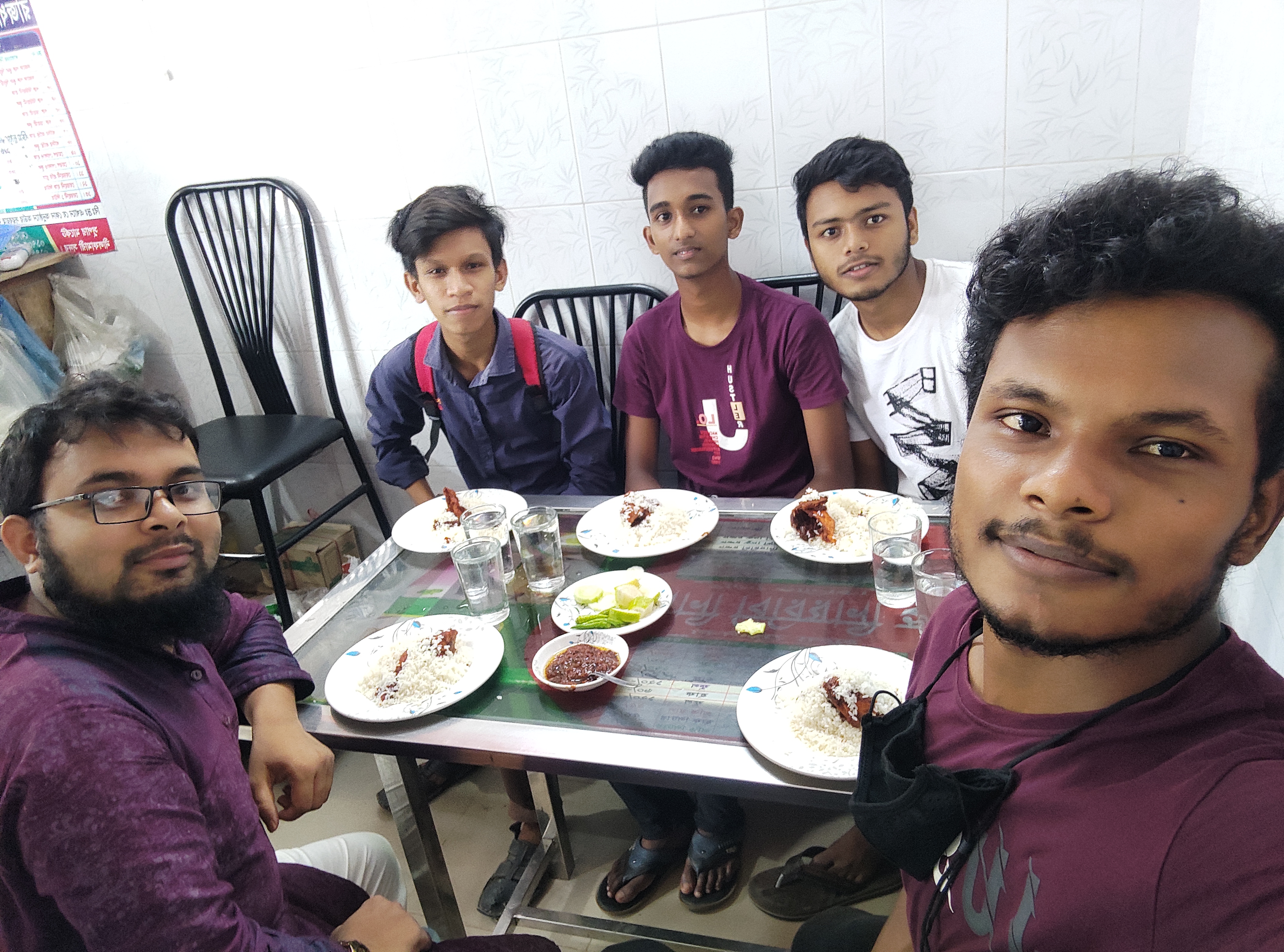 খবর দেখতে দেখতে হটাৎ বন্ধুদের ফোন আসে। বাসা থেকে বের হইতে বলে। তো আমি বাসা থেকে বের হলাম তাদের সাথে দেখা করার উদ্দেশ্য। তারপর আমরা দেখা করলাম। ওরা ৩ জন ছিলো রিয়াদ, সৌরভ এবং তীর্থ। তাদের বললাম কিরে সকাল সকাল ডাকলি কেন, কি এমন দরকার? তারপর তারা বললো অনিক ভাই ডেকেছে। অনিক ভাই হলো আমাদের পাড়ার একজন বড় ভাই। এর মধ্যে সেখানে অনিক ভাই হাজির। ভাইকে বললাম, ভাই ডেকেছেন আপনি? ভাই বললো হুম তোদের ডেকেছি। আসলে অনিক ভাইয়ের কিছুদিন আগেই বিয়ে হয়েছে। করোনা ভাইরাস এর কারণে অনুষ্ঠান করতে পারেনি। তাই আমরা যারা ভাইয়ের ক্লোস ছোট ভাই তাদের ট্রিট দেওয়ার জন্য ডেকেছে। ভাই আমাদের ৪ জনকে নিয়ে বিরিয়ানি হাউজে যায়। সেখানে আমরা মোরগ পোলাও খাই। মোরগ পোলাও এর স্বাদটি যেন জিভে এখনো রয়ে গিয়েছে। মোরগ পোলাও খাওয়া শেষে সবাই বোরহান খাই। আমার ব্যক্তিগত বোরহান খুব পছন্দের। খাওয়া দাওয়া শেষ করে সবাই ভাইকে ধন্যবাদ দিলাম এত সুন্দর একটা ট্রিট দেয়ার জন্যে। তারপর সবাই সবার বাসায় চলে যাই।