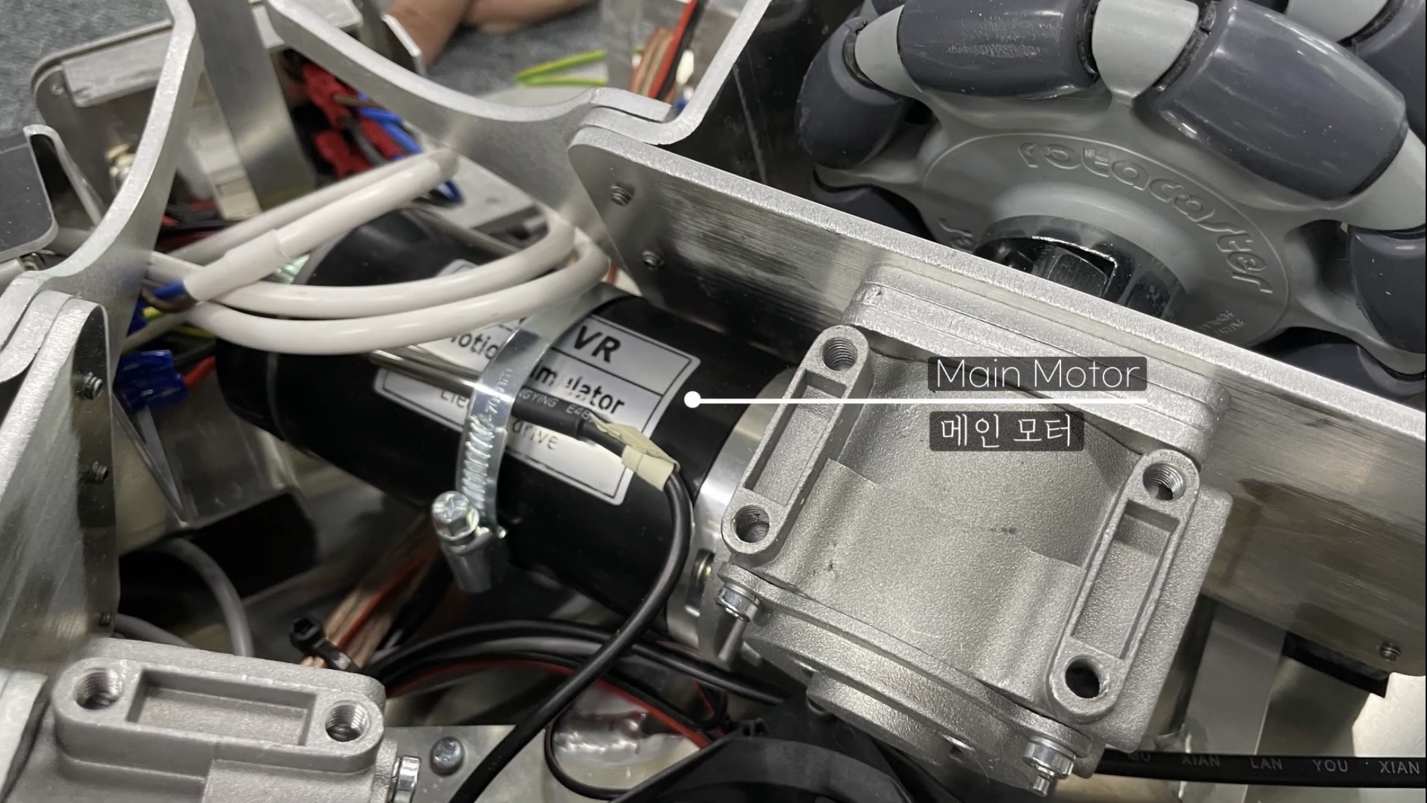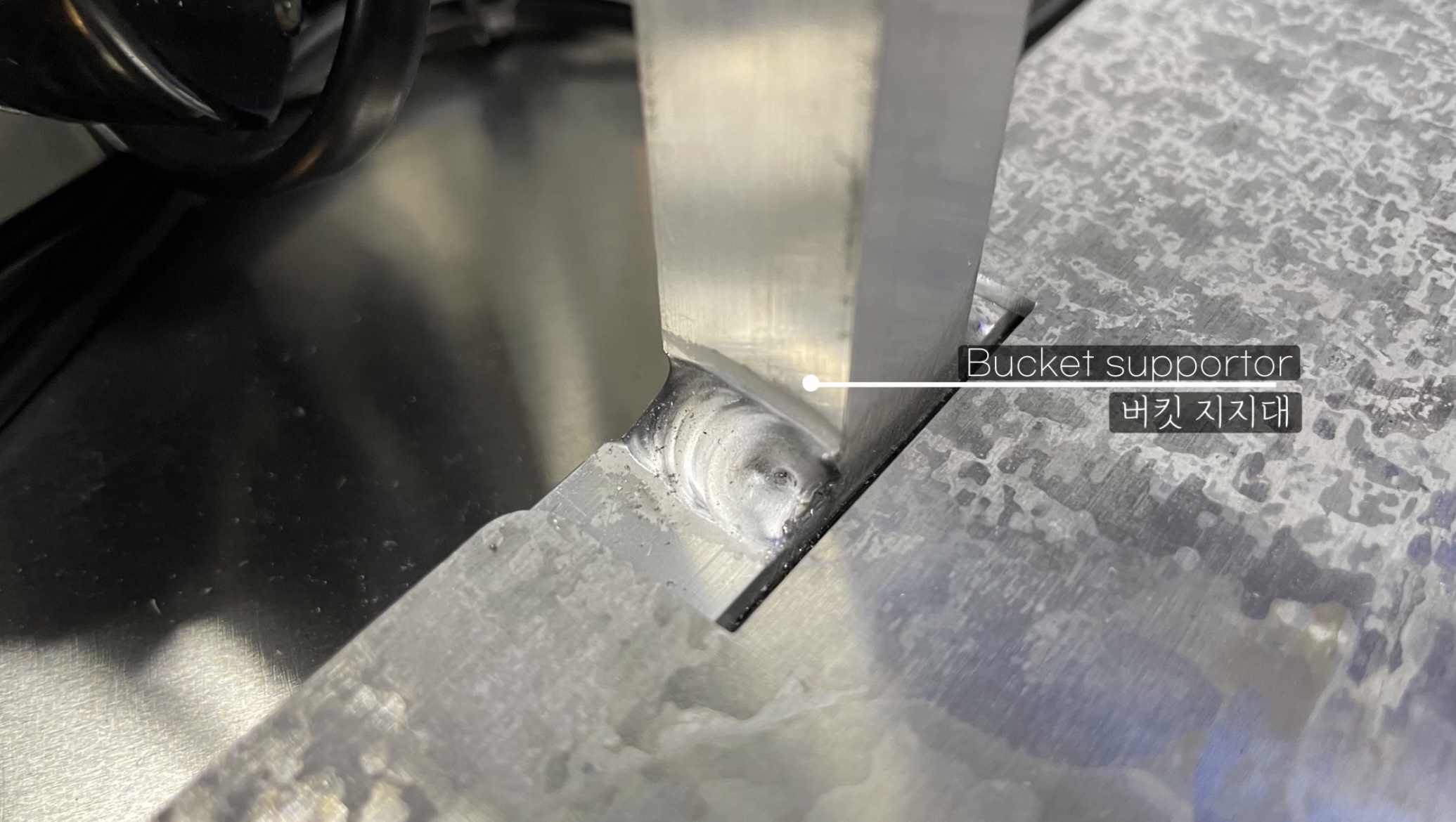 이 보조바퀴가 연결된 부분이 재미있는데 용접된 기둥 옆으로 슬릿을 만들었습니다. 아마 휨으로 발생할지 모를 크랙을 방지하기 위한 것 같은데 시제품을 만들다가 추가한 것 같아요. 이런 구조는 설계할 때는 절대로 볼 수 없거든요. 그래도 이런 구조를 생각한 거 보면 제법 실력 있는 엔지니어의 솜씨가 느껴집니다.