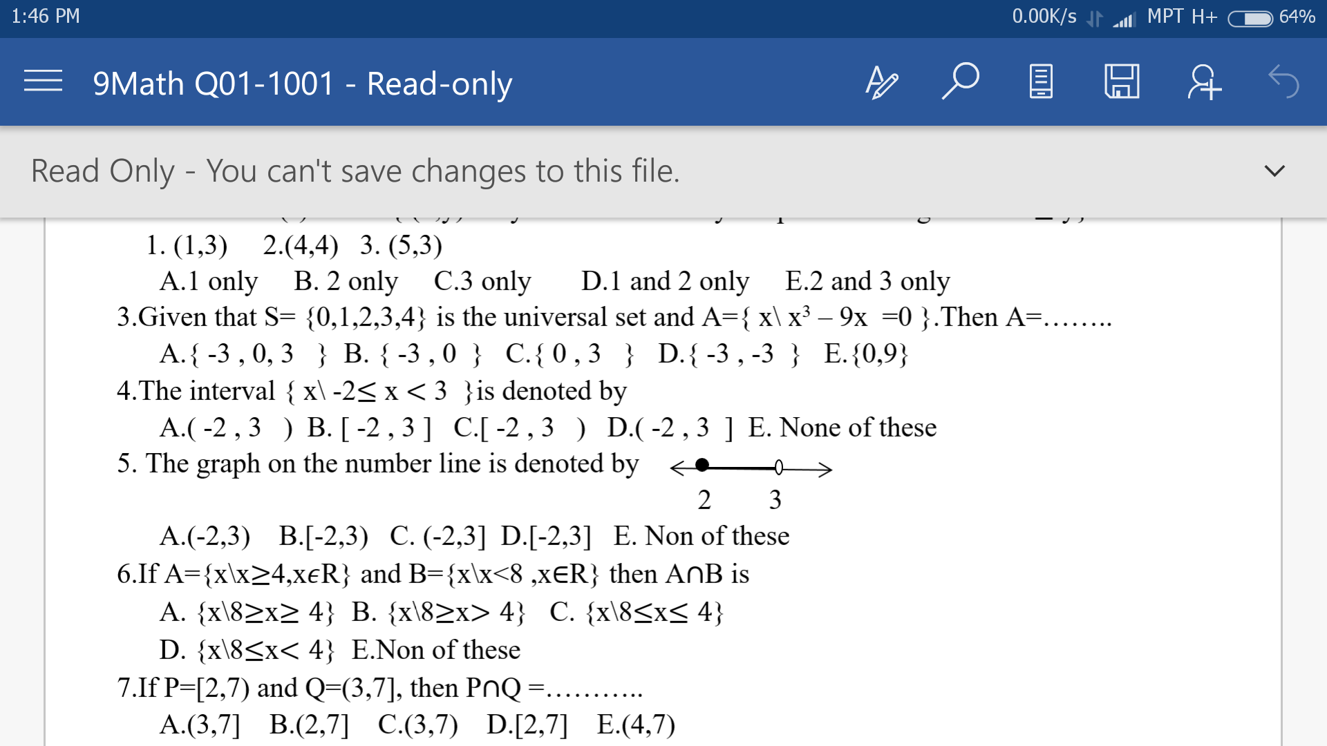 A.1 only B. 2only C. 1and3 only D. 2and3 only E. 1,2 and 3 - A={x\x is an integer,1<x<12} and