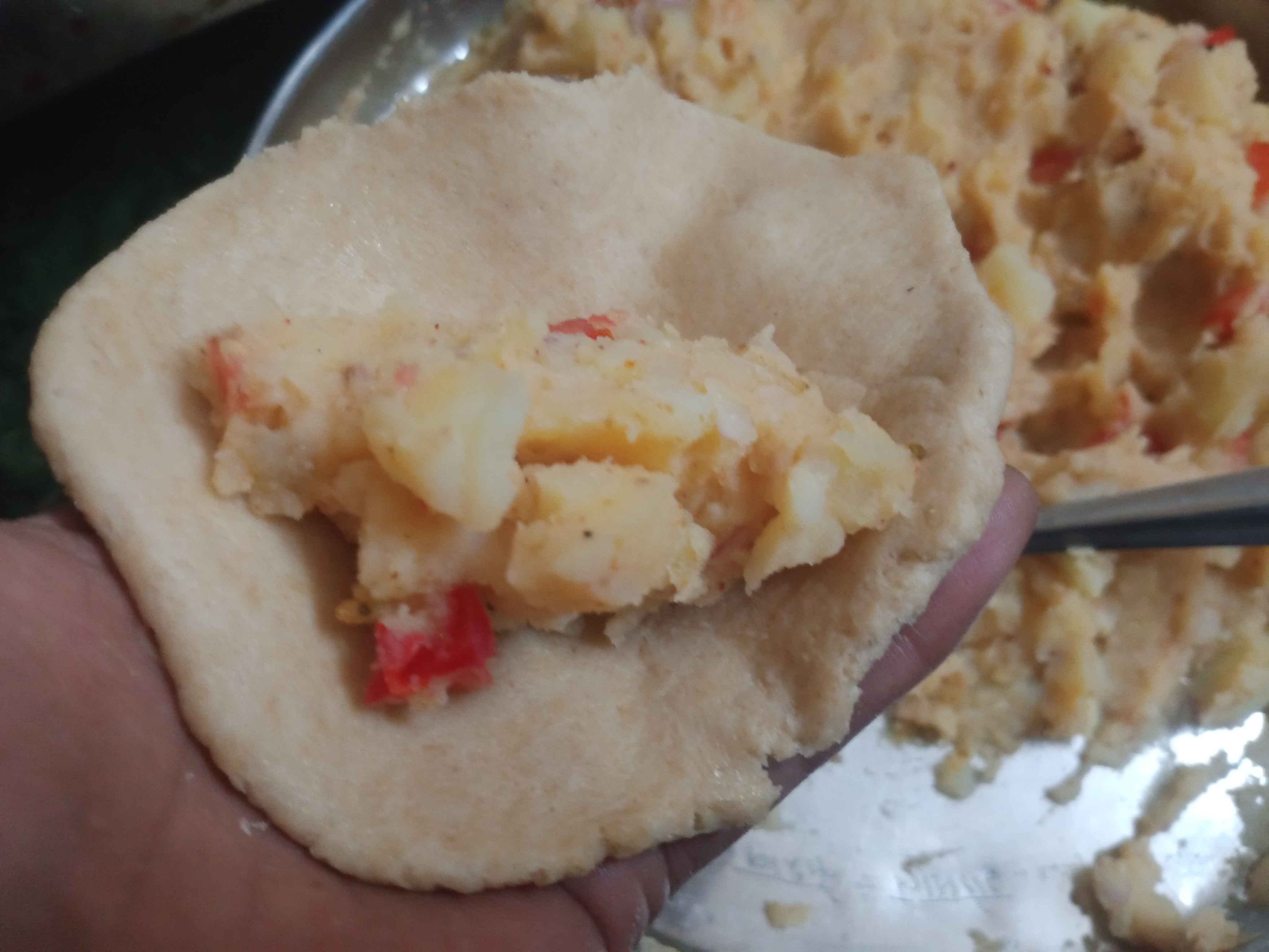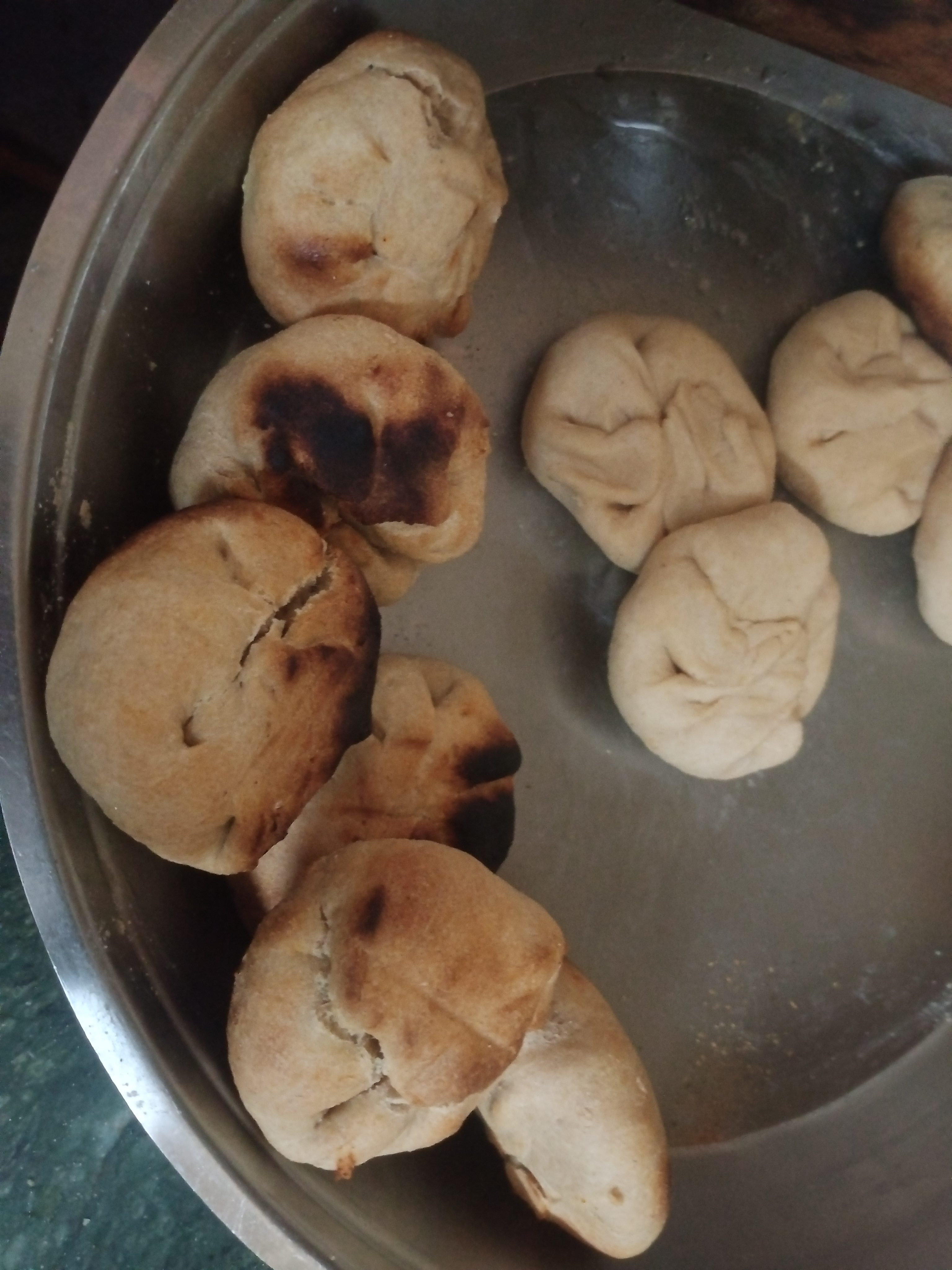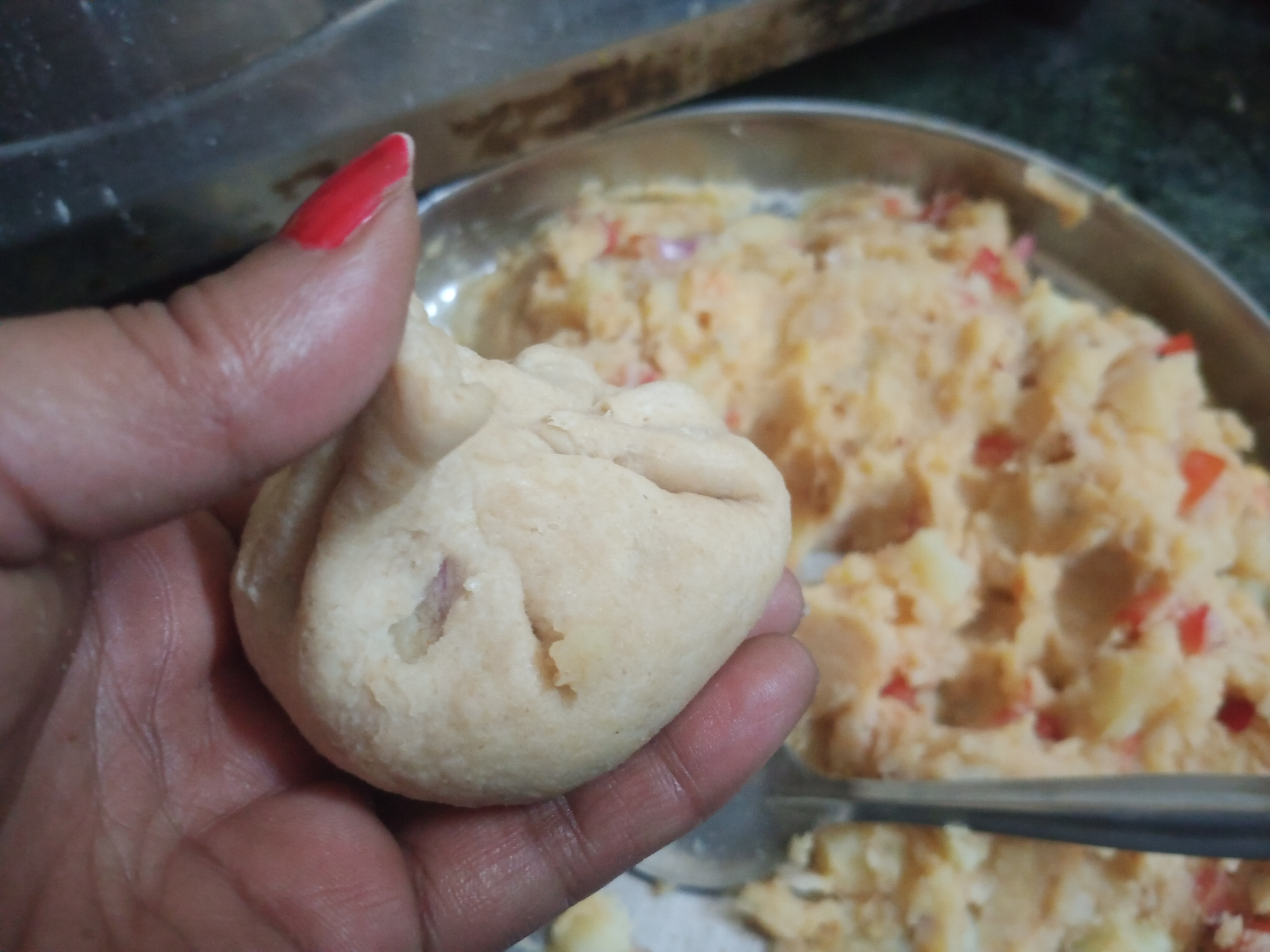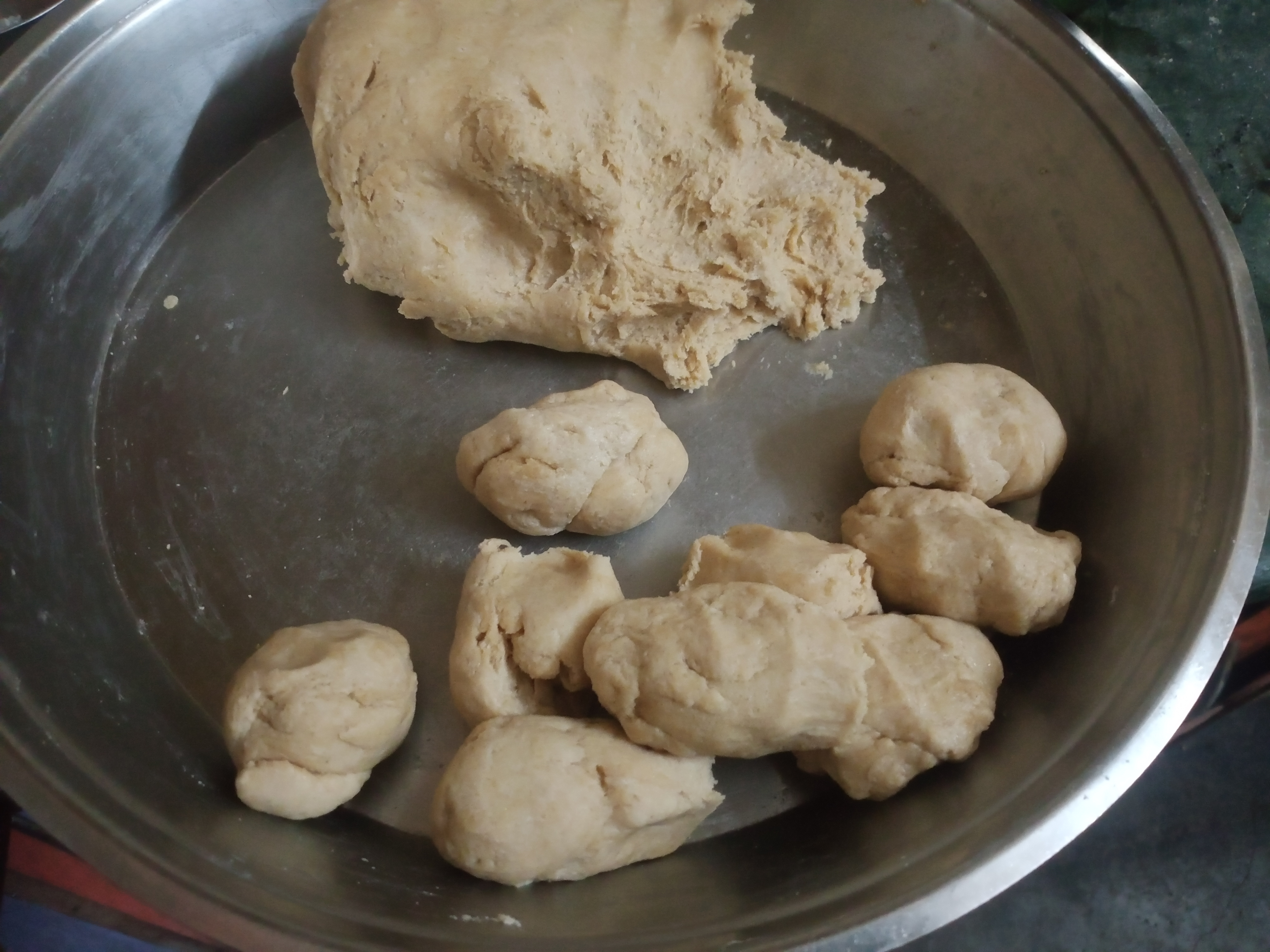 - Next, prepare small balls from the dough. Fill these balls with the potato stuffing prepared earlier, and place them in a tandoor (or oven) for baking.