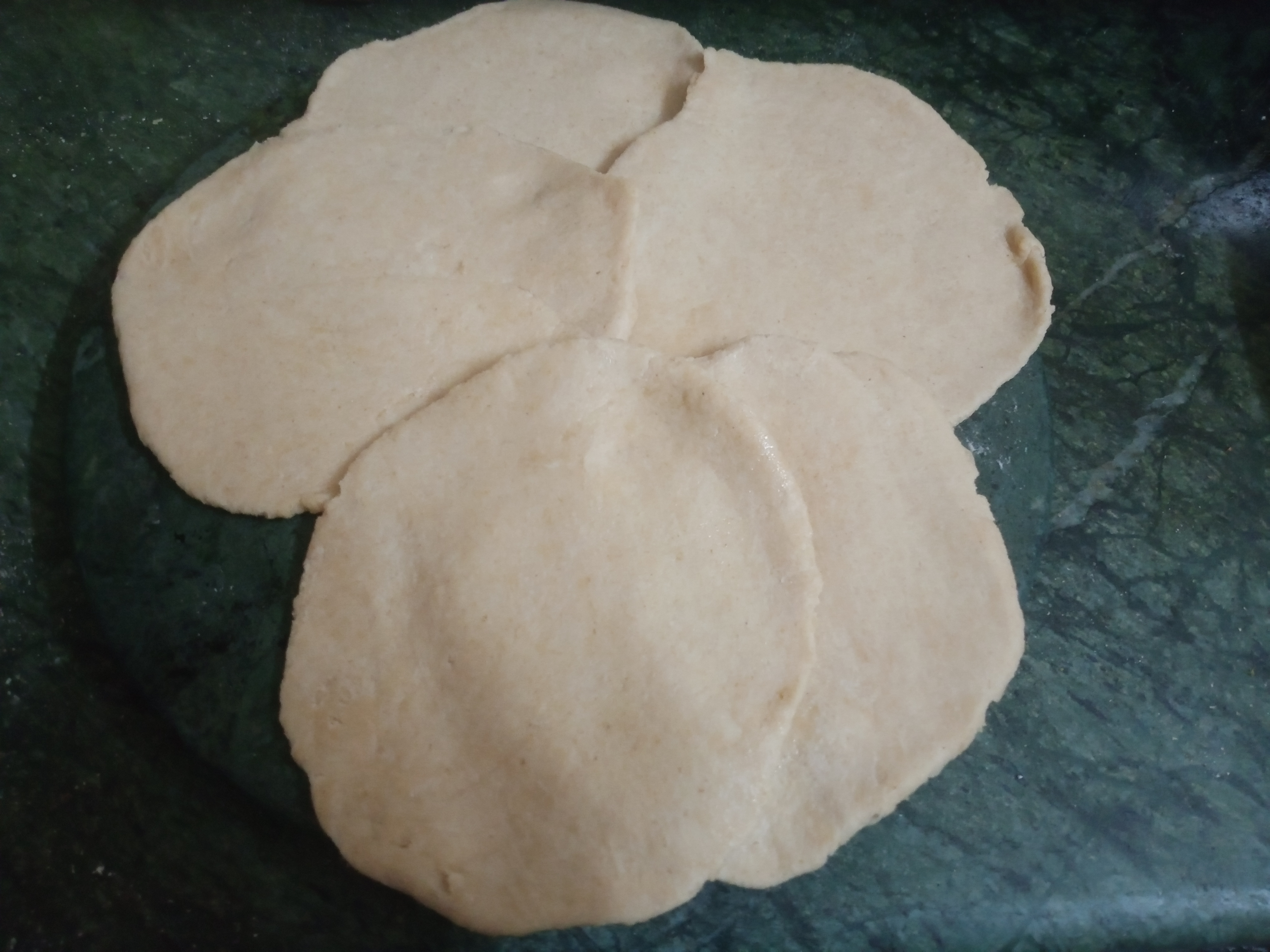 - First, take the wheat flour, add salt and half a bowl of oil to it, and mix it thoroughly. Once well combined, use water to knead it into a smooth dough.