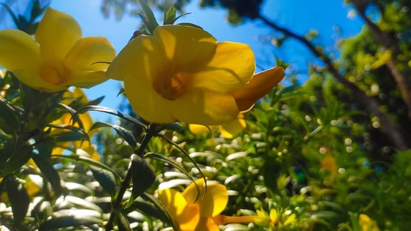 The yellow flower you see is called All Kalananda. I like this flower the most because its color is yellow. Because the color yellow is loved by everyone and it attracts everyone. Anyway, some facts about the field itself, Allamanda cathartica, commonly called golden trumpet, common trumpetvine and yellow allamanda, is a species of flowering plant in the genus Allomanda. It is native to Brazil. In Flora Brasiliensis by Carl Friedrich Philipp von Martius.