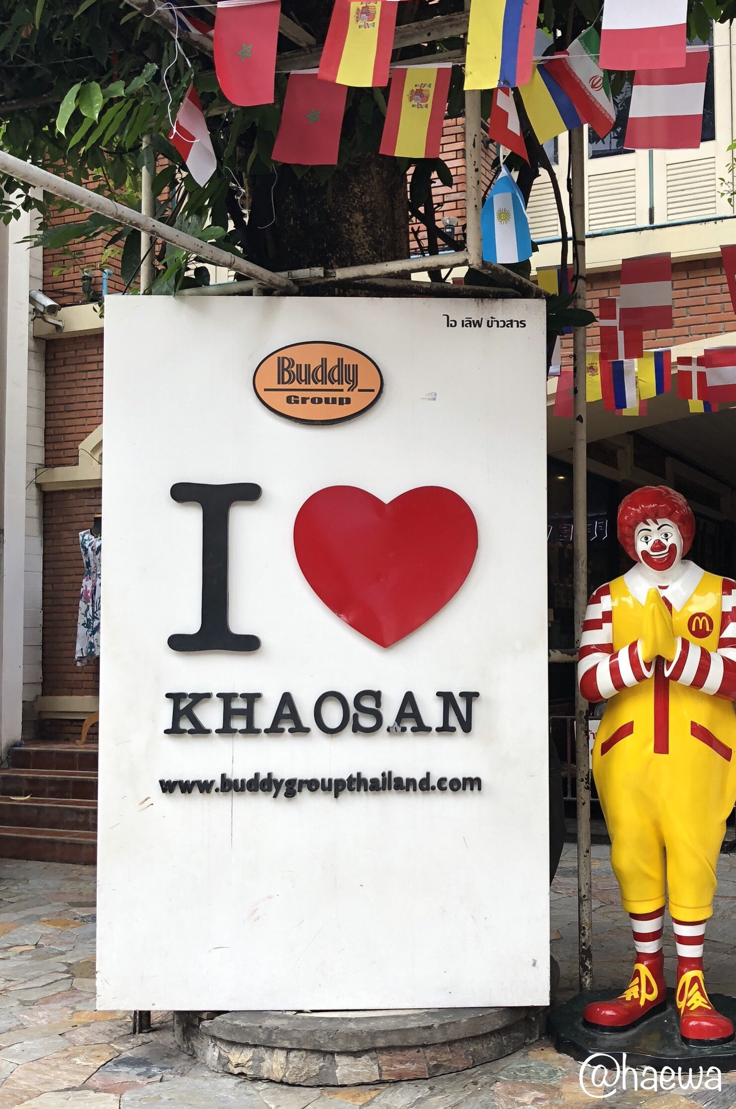 카오산 로드에 가면 다들 찍는다는 맥도날드 아저씨 사진 한방 찍고 콘파이 맛보러 들어갔다.