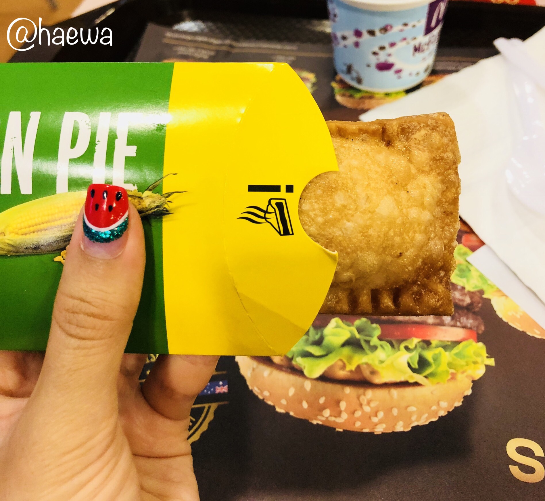파이 안에는 옥수수 알맹이와 옥수수 잼? 죽? 같은게 섞여서 들어있는데 구수하고 달달한 맛이 난다.