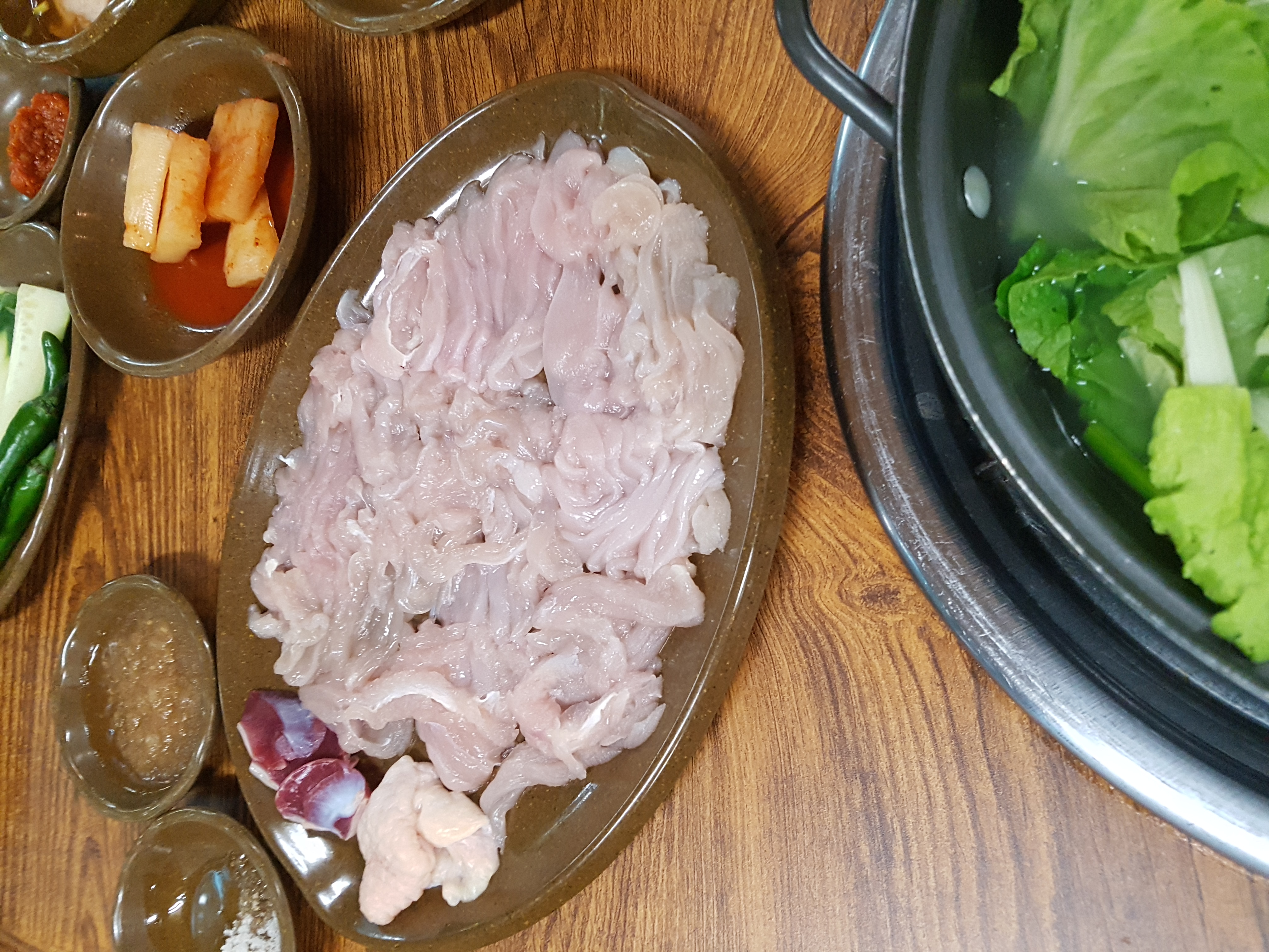 제주도에서 무슨 닭 샤브냐겠지만 닭 도축이 자유롭게 허용되는 이 마을에서 싱싱한 닭 샤브를 먹을 수 있습니다.