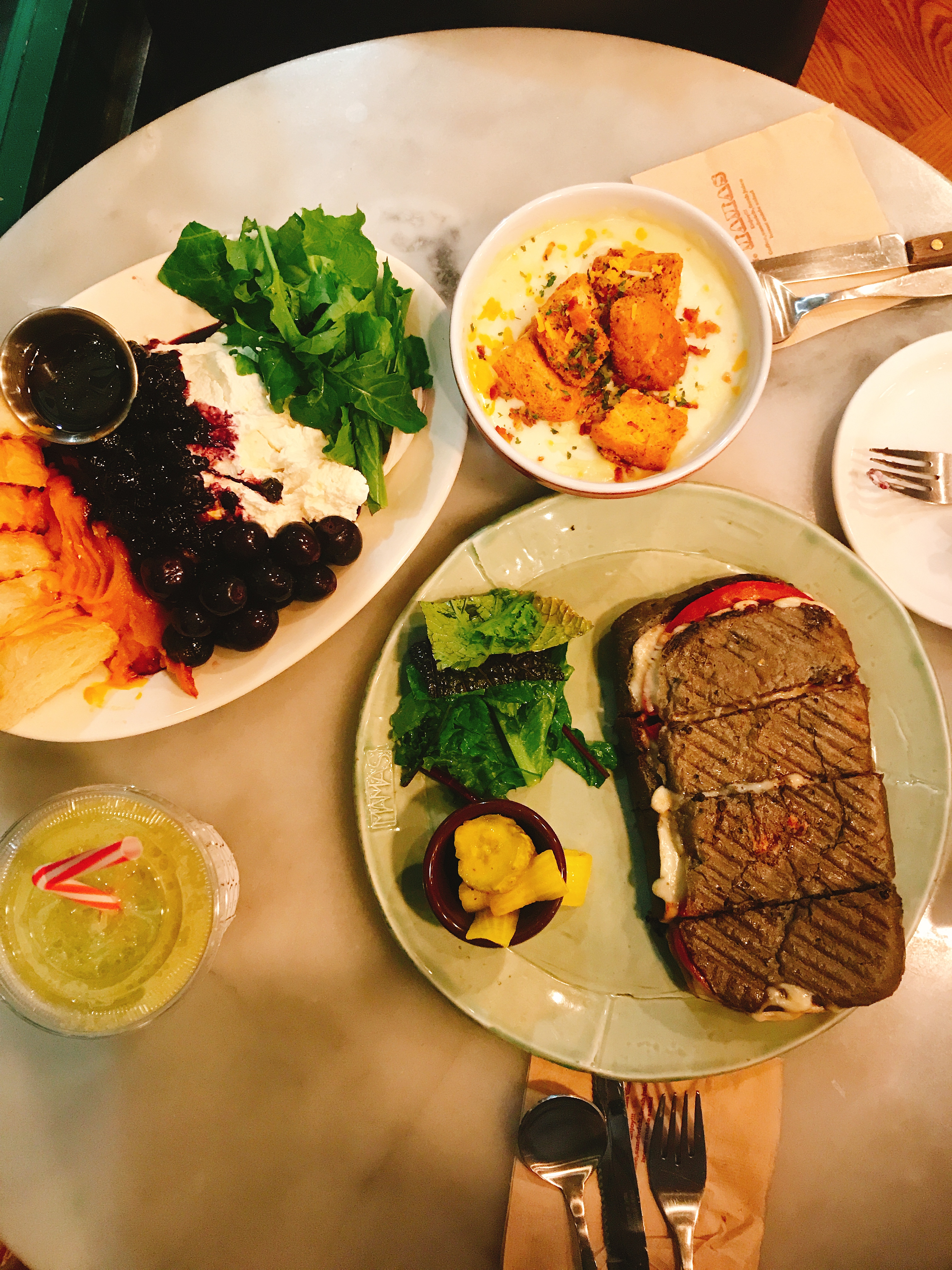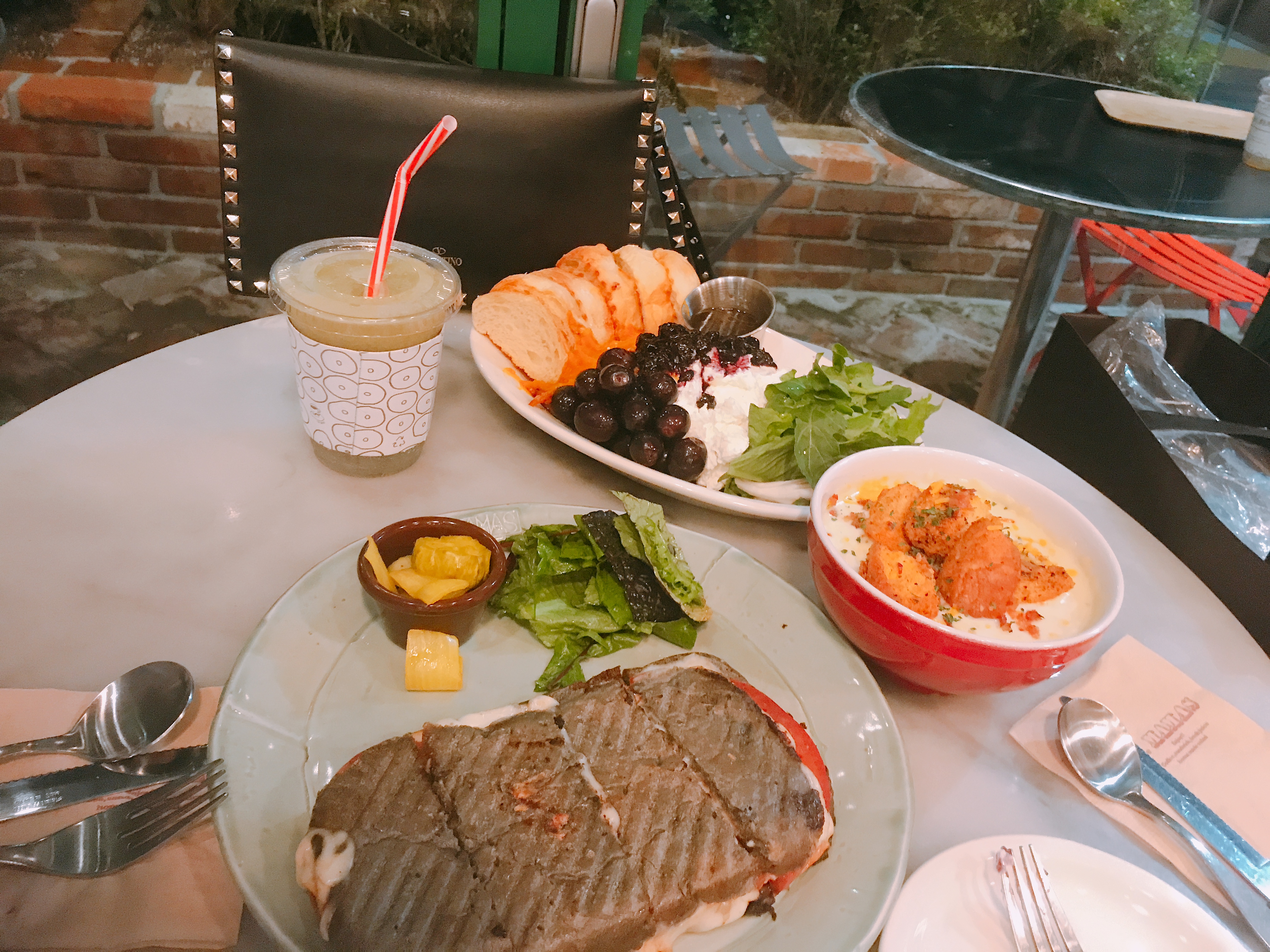 마마스 시그니처, 토마토 모짜렐라 파니니, 감자수프, 청포도 주스를 시키고 기다리기