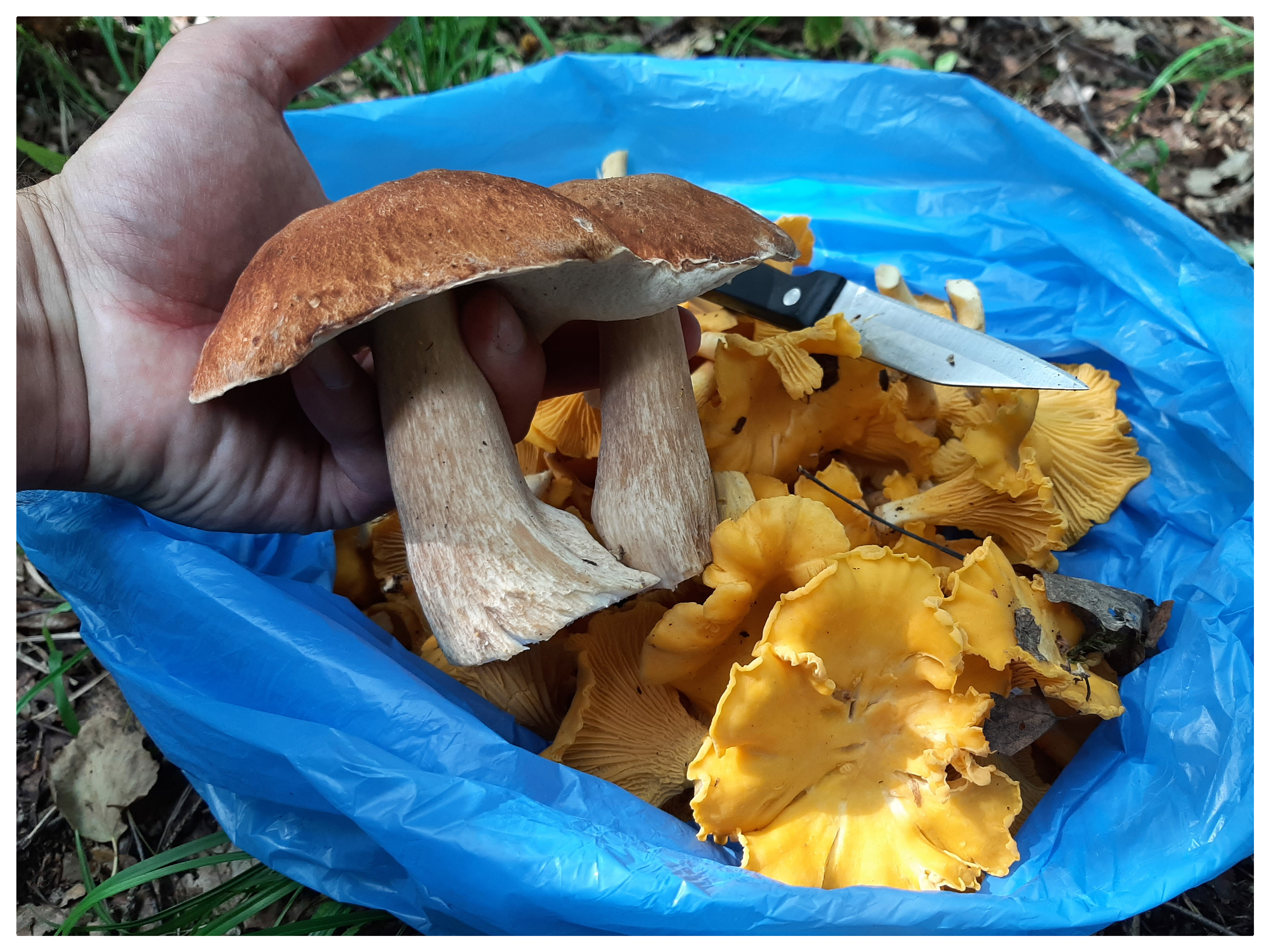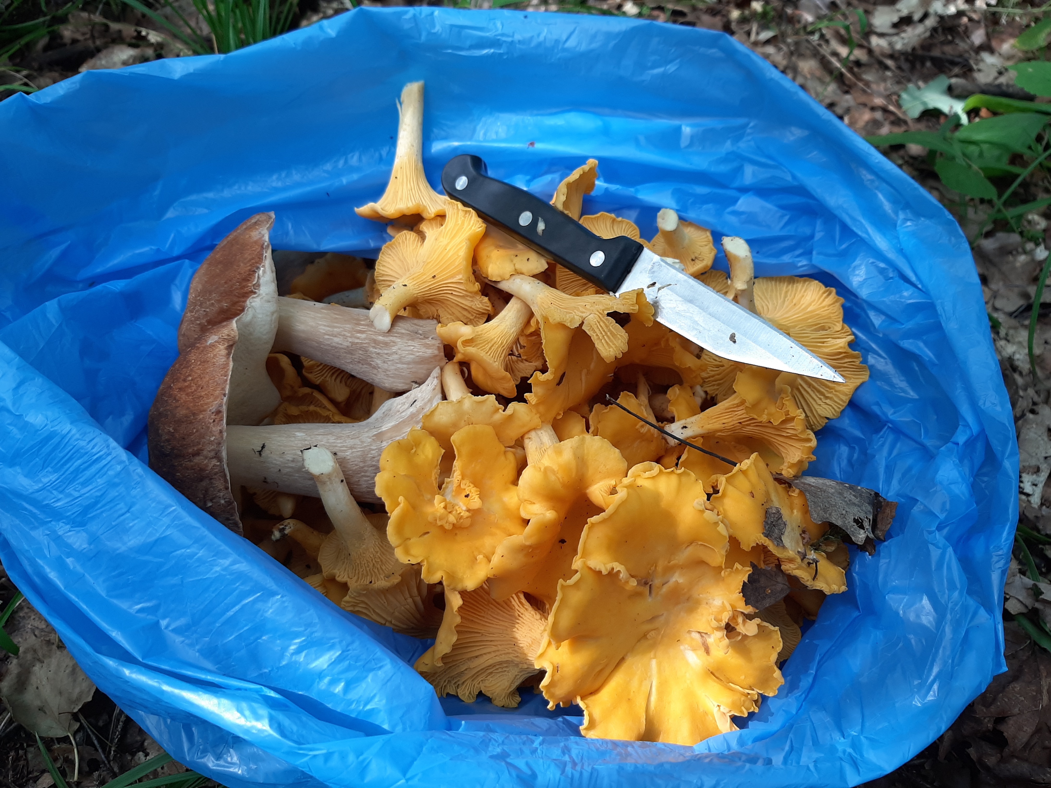What could be better than going to the forest and picking a large amount of edible mushrooms, enough that I can eat them for two whole weeks. These yellow mushrooms here are chanterelles, which are very valuable here, because in the local markets here, their price can be 15 euros for 1Kg. But when I go find them, I not pay this big price :)) I get them free from forest :))