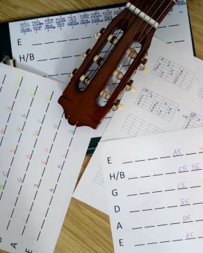 Colours, letters, guitar and scales.