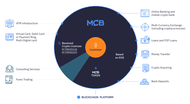 MyCryptoBank is an online bank with which each and every client registered within the electronic banking industry will perform a full vary of banking operations, further operations with cryptocurrency (payment process, debit cards, credit and investment services, use of the crypto-currency as credit protection and plenty of others ) supported BlockChain technology while not bank intervention. MyCryptoBank so offers the client associate external access service for bank accounts, merchandise and services for bank transactions. MyCryptoBank offers its customers a multi-functional platform for banking services, that represents a hybrid system that mixes ancient and digital currencies. the utilization of digital currency makes transactions quicker and cheaper, whereas ancient currencies guarantee acceptance and validity of all sensible matters.