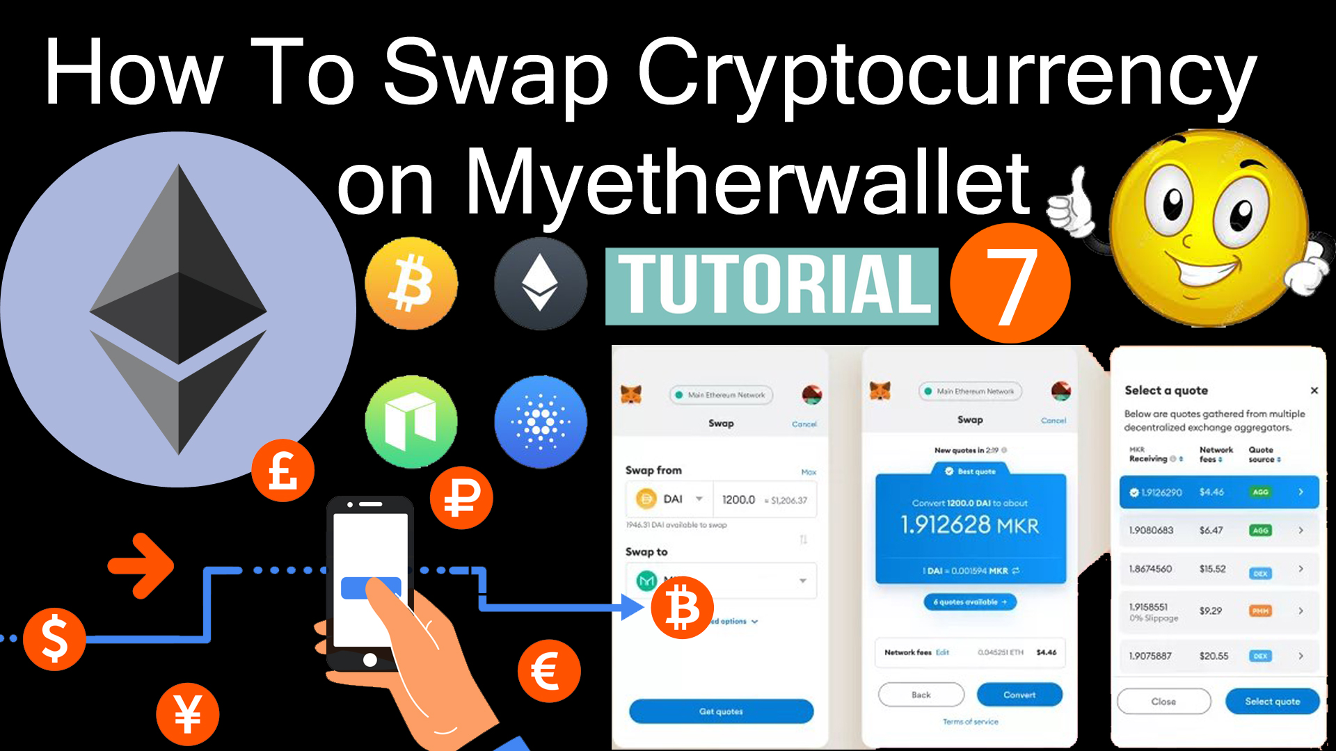 How To Swap Cryptocurrency on Myetherwallet. MEW Have partnered with DEX.AG to build a decentralized swap right in the MEW wallet app, allowing users to exchange their ETH and tokens without leaving their phone. Step 1. Open the MEW wallet app. Step 2. To find the Exchange section, click the arrow icon in the bottom-center of the app. Step 3. When you’re ready to begin, click ‘Swap Tokens’ in the top-left corner. Select the cryptos you’d like to swap and the amount you’re offering, then click ‘Find best rate’.. its very easy and every one can understand. Its a short demo you must