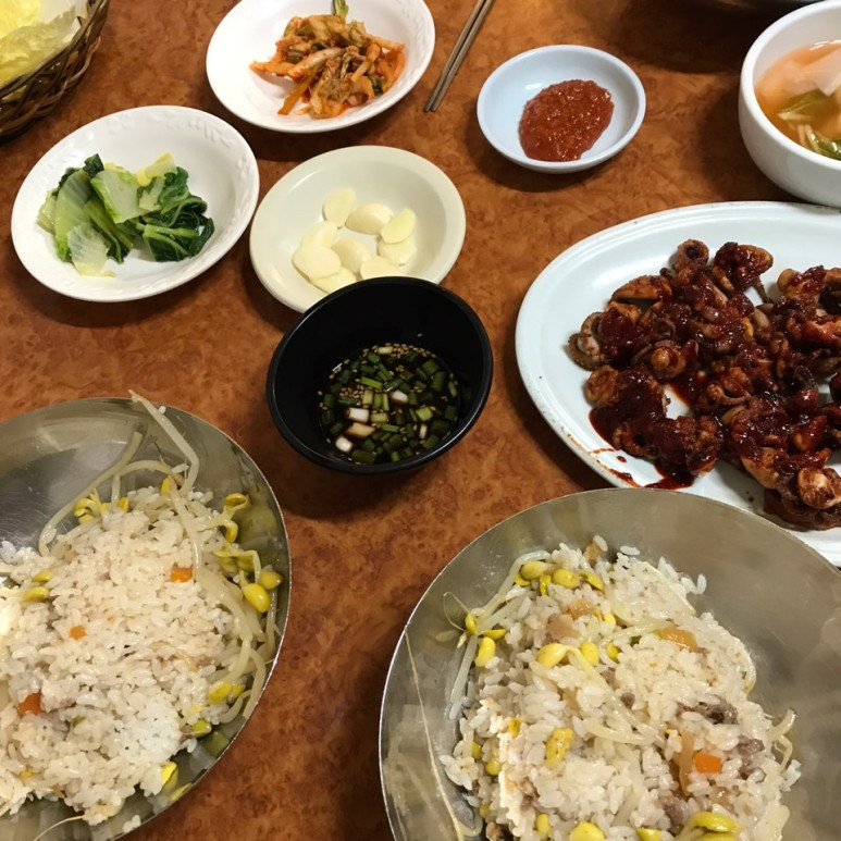 콩나물밥에 쭈꾸미 올려먹기