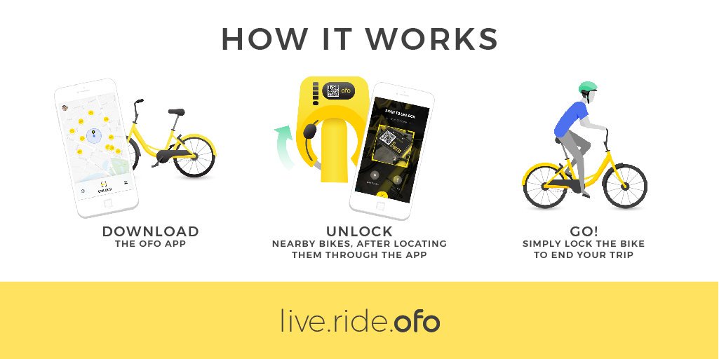 ofo의 창업자인 따이웨이는 대학교 재학 중 자전거를 여러 번 분실했던 경험을 토대로 창업 프로그램을 통해 2014년 ofo 서비스를 시작하여 현재는 5개 국가에서 서비스 중이라고 합니다.