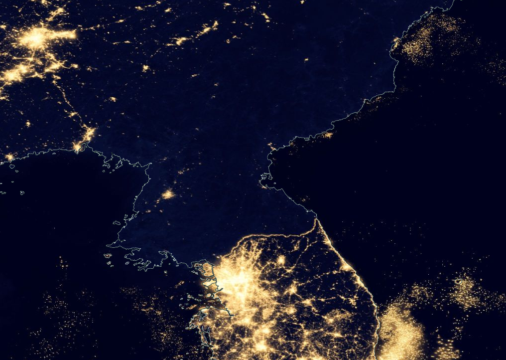 The Earth at Night layer is a night time view of the Earth, showing visible light emanating from sources such as city lights, gas flares, wildfires, auroras and reflected moonlight. The image is a composite of data from the Visible Infrared Imaging Radiometer Suite (VIIRS) instrument on board the joint NASA/NOAA Suomi National Polar-orbiting Partnership (Suomi NPP) satellite. The image composite was assembled from clear, cloud free images from 9 days in April 2012 and 13 days in October 2012.