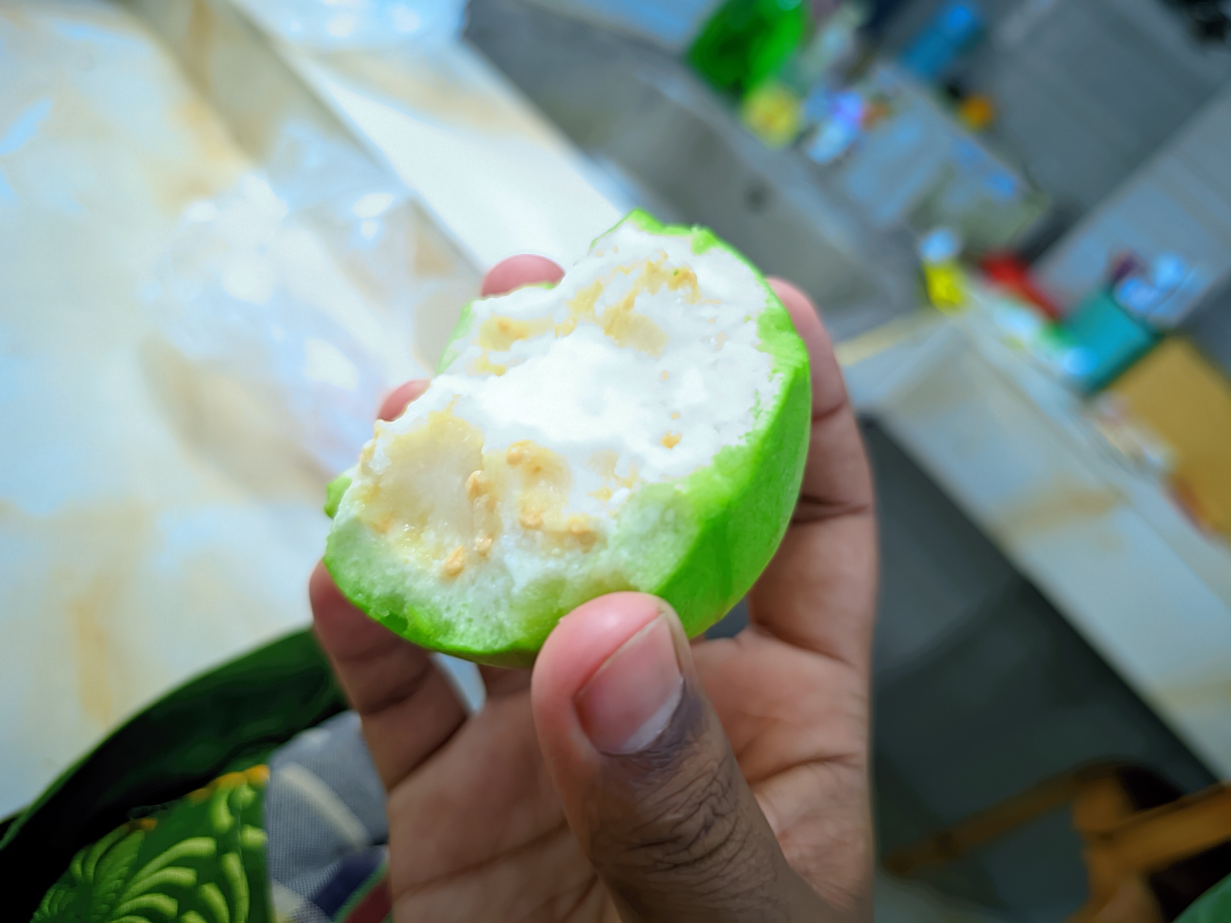 Anyway, after spending a little time like this in the morning, my morning classes start, so I attended class until eight in the morning. Although food was provided, I did not eat anything. I rested for a while. Shortly after that, I had some guavas to buy, so I started eating a guava.