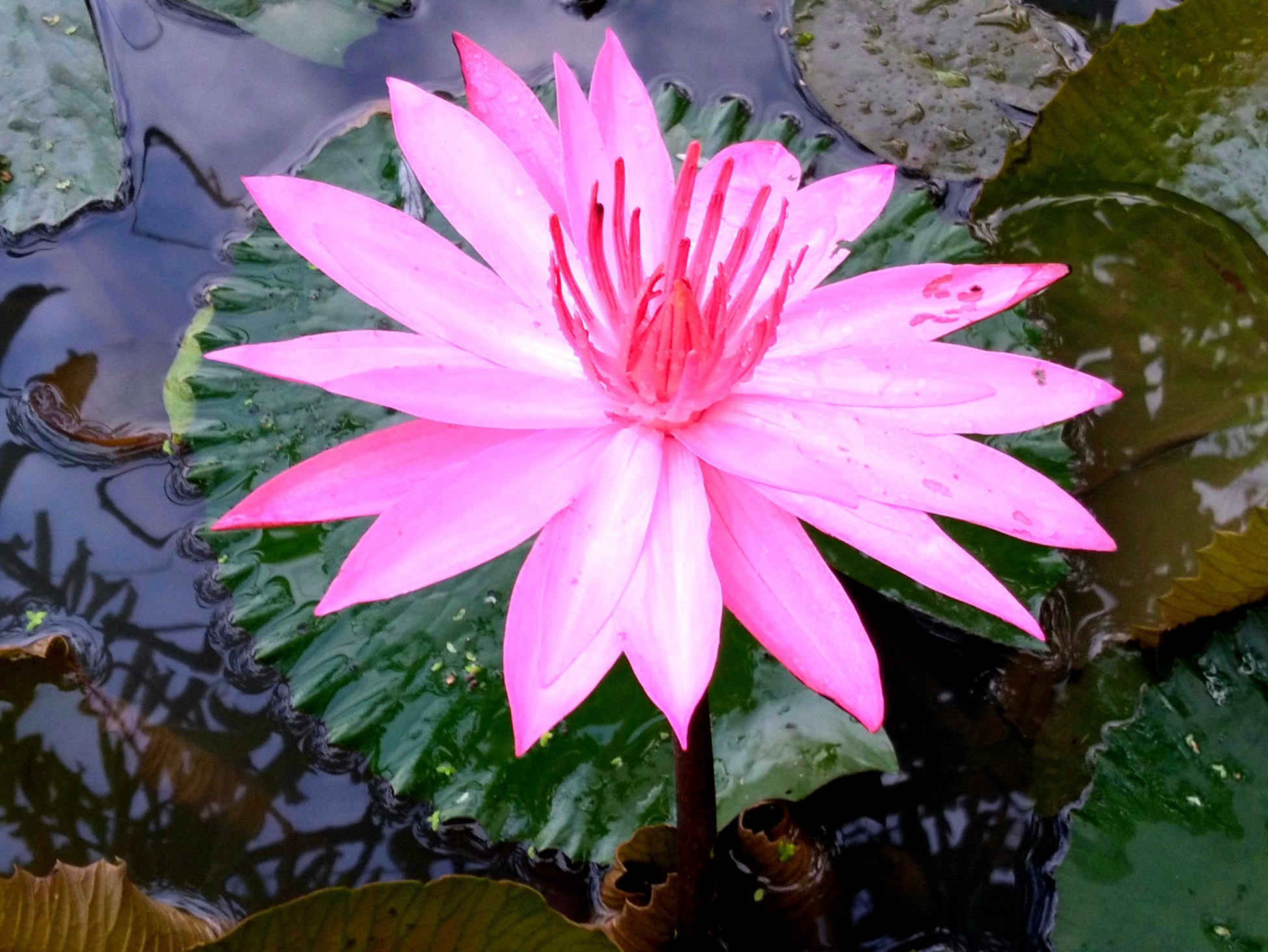 Halo teman-teman semua, pada kesempatan kali ini saya ingin menunjukkan fotografi Bunga teratai yang baru mekar di kolam ikan sepupu ku.
