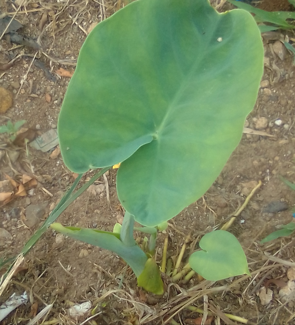 Ini adalah tanaman talas atau keladi. Tanaman talas bahasa latinnya adalah Colocasia esculenta. Talas termasuk keluarga Araceae. Umbi talas bisa dikonsumsi. Enak dinikmati jika sudah direbus atau dikukus.