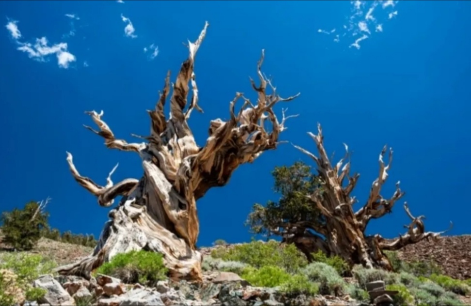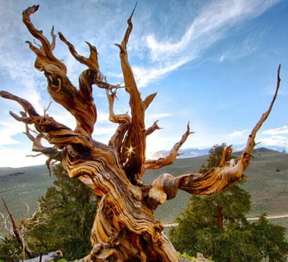 Methuselah - the oldest tree in the world. It is 4,852 years old (2021). This tremendous tree is located in the White Mountains of Eastern California. It is a bristlecone pine. The substantial thing about Methuselah Grove is it can lose up to 90% (ninety percent) of its bark and still survive!