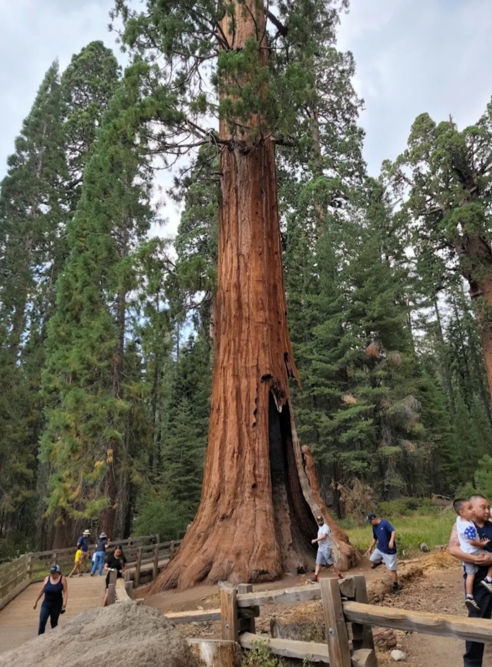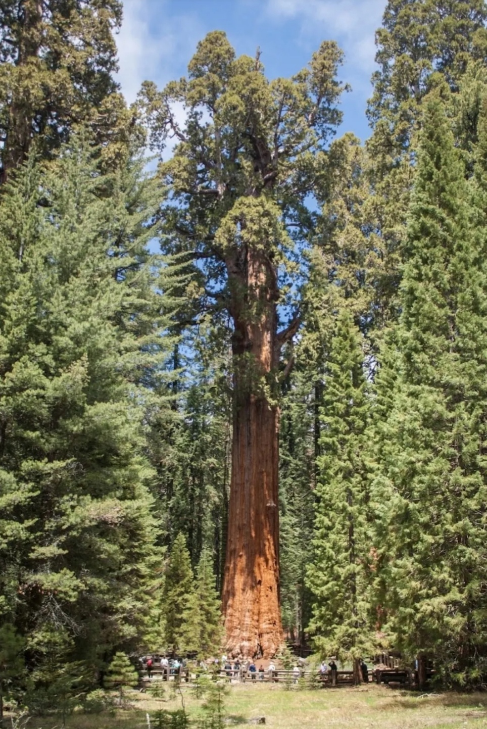 General Sherman - the world’s largest tree, stands 275 feet (83m) tall and 36 feet (11m) in diameter at the base. The tree is 17.5 feet (5.3m)in diameter. The species - Giant sequoia. The General Sherman was named after the American Civil war general William Tecumseh Sherman. This tree is about 2200 years old. The most interesting thing is that it takes 40 years to grow three inches in diameter. However, General Sherman is not the largest historically recorded tree. The Lindsey Creek tree, with 90 000 (ninety thousand) cubic feet almost twice the volume of General Sherman was reported fallen from a storm in 1905.