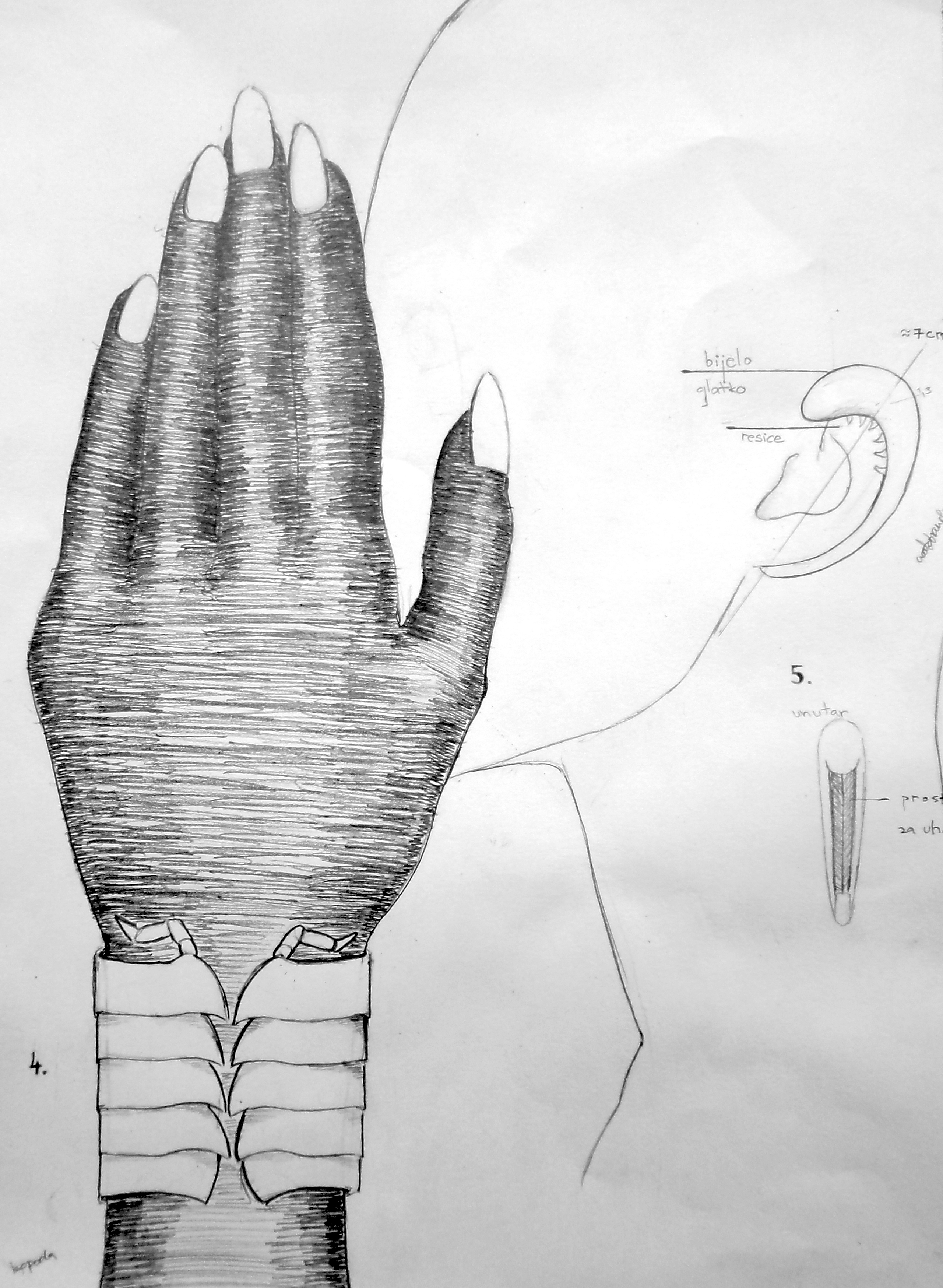 The elongation of appendages, limbs, antennas, hair and other body parts is supposed to facilitate the detection of tactile stimuli, water and air flow. Common troglomorphic characteristics are specialisation of sensory organs, chemoreceptors, hygroreceptors, thermoreceptors, pressure receptors; compressed body shape, increased number of eggs, enlargement in size.