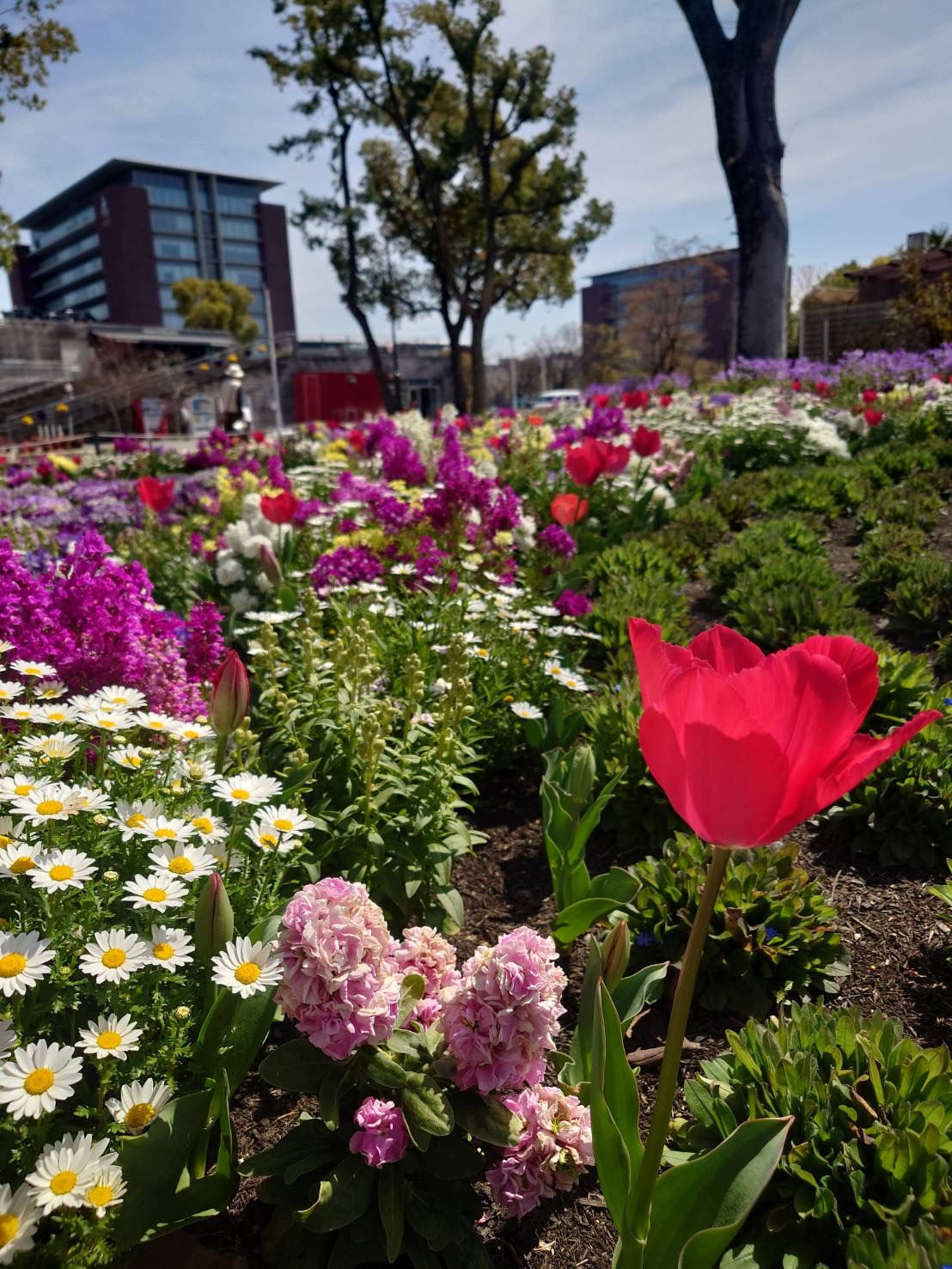 During the Spring season like this, apart from Cherry Blossom flowers, there are also colorful and lovely flowers for people to enjoy at Meijo Park, in the heart of Nagoya, Japan.