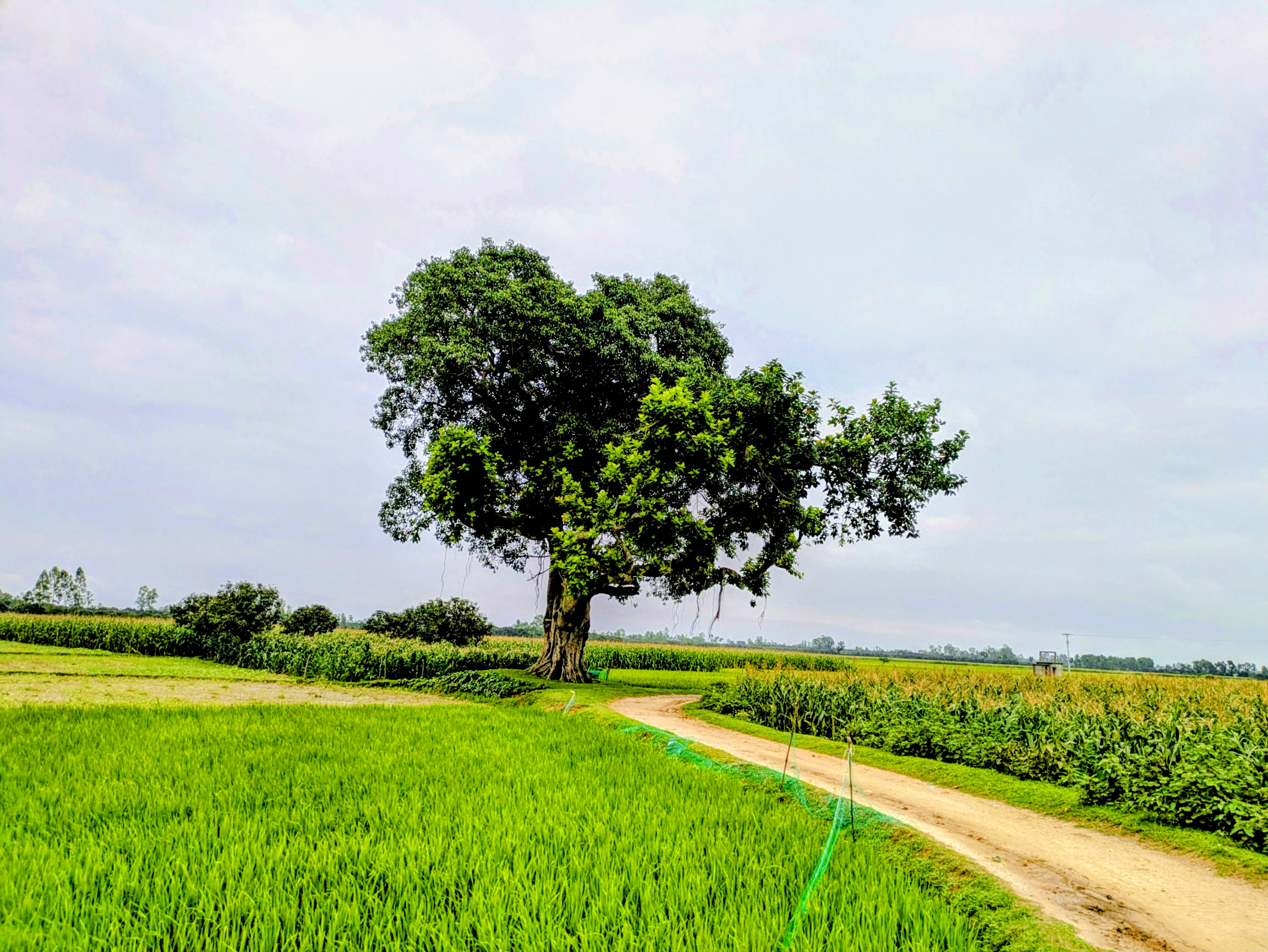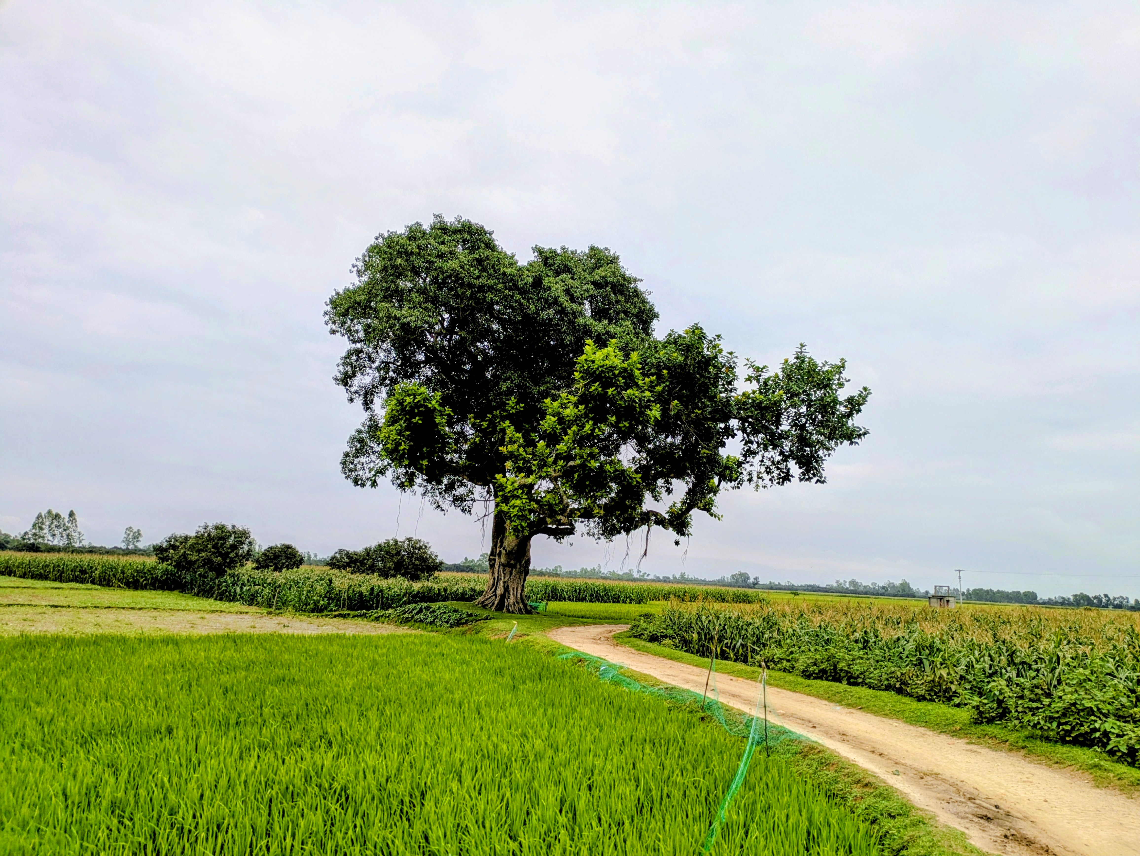 I went to Tekani's field yesterday afternoon under the old banyan tree.This place is one of the most beautiful places in our area. This place is one of the best places in terms of the beauty of green nature.All around are lush green rice fields, corn fields, and fields of various other lush green crops. And in the middle of them, this banyan tree. And that is why this banyan tree looks so beautiful from a distance. Especially when you look close to this tree from a distance, you get a chance to see the beauty of this tree in a very beautiful way.This banyan tree is an old banyan tree in our area.