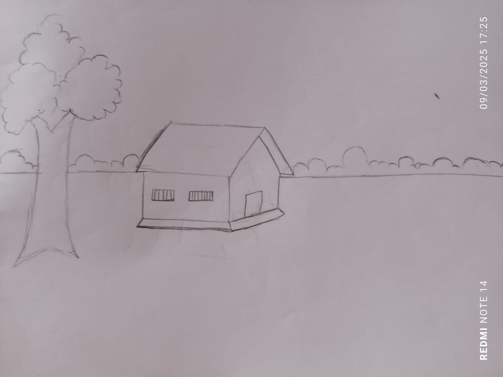 আমি প্রথমে প্রয়োজনীয় উপকরণগুলো নিয়েছি। এরপরে পেন্সিল দিয়ে পাতার একটি ঘর এঁকে নিয়েছি যা আপনারা দেখতে পাচ্ছেন আমার ফটোগ্রাফির মাধ্যমে।