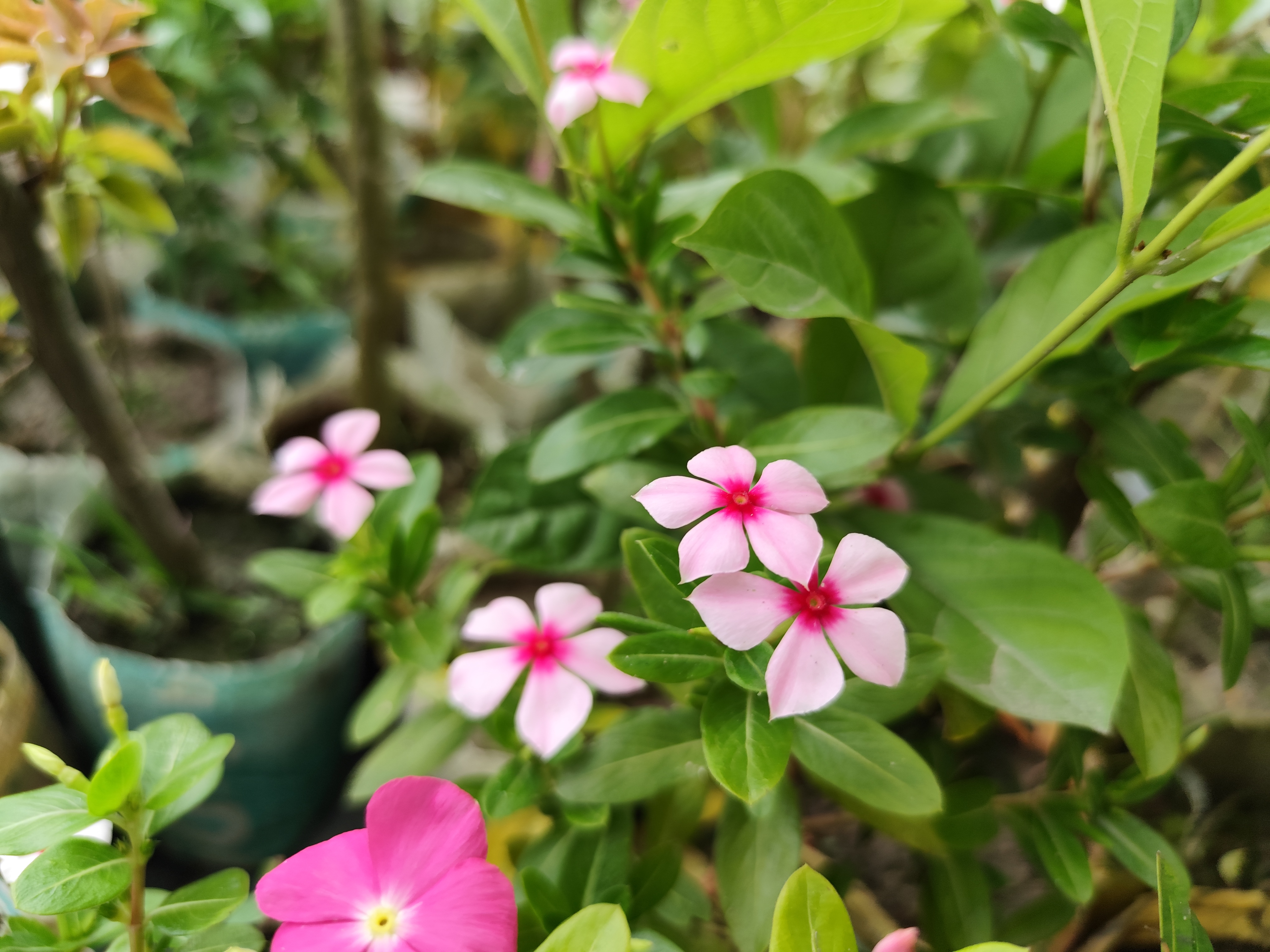 বন্ধুরা, আজকের নতুন একটি ব্লগে তোমাদের সবাইকে স্বাগতম। আজকের ব্লগে তোমাদের সাথে একটি ফুলের ফটোগ্রাফি শেয়ার করব। আমার আজকে শেয়ার করা ফুলটি হলো নয়ন তারা ফুল। আমি এর আগে বেশ কয়েকটি নয়নতারা ফুলের ফটোগ্রাফি তোমাদের সাথে শেয়ার করেছি। আমি বলেছিলাম যে আমার ছাদ বাগানে বিভিন্ন কালারের নয়নতারা ফুল গাছ লাগিয়েছি এবার আমি। মোটামুটি সবগুলো কালারের ফুলের ফটোগ্রাফি তোমাদের সাথে শেয়ার করেছি। আসলে যেই গাছগুলো আমি ছাদে লাগিয়েছি। তার মধ্যে কিছু কাছে ফুল ফুটেছিল আবার কিছু গাছে কুঁড়ি ছিল। তাই যখন যেই গাছের ফুল ফুটেছিল সেই গাছের ফটোগ্রাফি করে আমি তোমাদের সাথে শেয়ার করেছি। আর এমন করে মোটামুটি সব গাছের ফটোগ্রাফি করে তোমাদের সাথে শেয়ার করেছি। আরো দুই তিনটি গাছ রয়েছে যেগুলোর কুঁড়ি থেকে এখনো ফুল আসেনি। তাই এখনো সেই গাছের ফটোগ্রাফি করে তোমাদের সাথে শেয়ার করা হয়নি। তবে আজকে তোমাদের সাথে যে নয়নতারা ফুল গাছটির ফটোগ্রাফি শেয়ার করব। এই নয়নতারা ফুল গাছ সচরাচর সবার বাড়িতেই দেখতে পাওয়া যায়। পুরো ফুলটি হালকা গোলাপি ও মাঝখানে গারো গোলাপি কালারের। এই ফুল গুলো পাঁচ পাপড়ি বিশিষ্ট হলেও পাপড়িগুলো একটু ছোট ছোট হয়ে থাকে। তবে এর আগের যে নয়ন তারা ফুলগুলো তোমাদের সাথে শেয়ার করেছি। সেই ফুলের পাপড়ি গুলো ভরা ভরা ছিল। আর আজকের ফুলের পাপড়ি গুলো একটু ফাঁকা ফাঁকা দূরত্ব ছিল পাপড়ি গুলোর মাঝে। আমার শেয়ার করা ফটোগ্রাফি গুলোতে এই হালকা গোলাপি ফুলগুলোর পাশে একটি গাঢ় গোলাপী ফুল রয়েছে যা দেখলেই তোমরা এই ফুলগুলোর মধ্যে পার্থক্য বুঝতে পারবে। আমার ঠিক জানা নেই কেন ফুল গুলোর একই নাম হওয়া সত্ত্বেও ফুল গুলো দেখতে একটু ভিন্ন ভিন্ন ছিল। হয়তো নয়নতারা ফুল হলেও দুটো ফুলের জাত ভিন্ন ছিল। যাইহোক আমার শেয়ার করা আজকের নয়নতারা ফুলের ফটোগ্রাফি গুলো দেখে নেওয়া যাক।