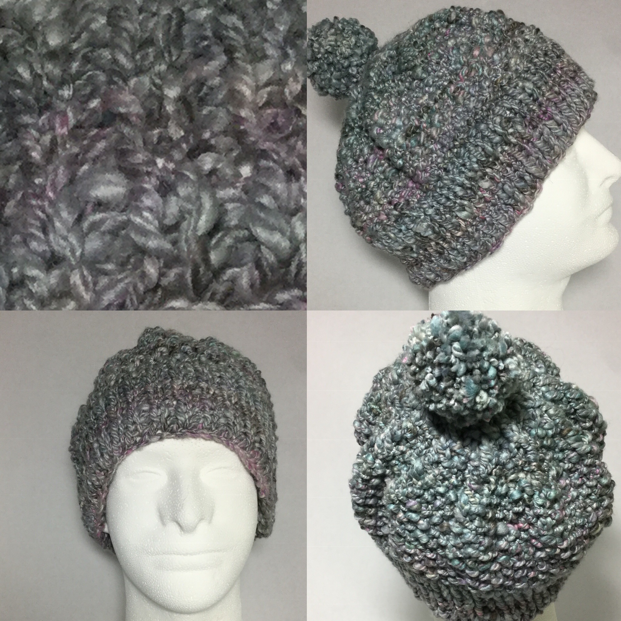 I will confess that this was not yarn at the start of my self imposed handspun2hat challenge, but in fact was a rarely used cowl I had knit years ago that i decided was destined to be a hat all along. With that in mind I proceeded to use a technique called "frogging" to once again have a skien of yarn that I knit into an awesome seed stitch hat with a pom pom for a friend. I look at these pics and am even more convinced that just because things my be one way doesn't mean they can't be another!