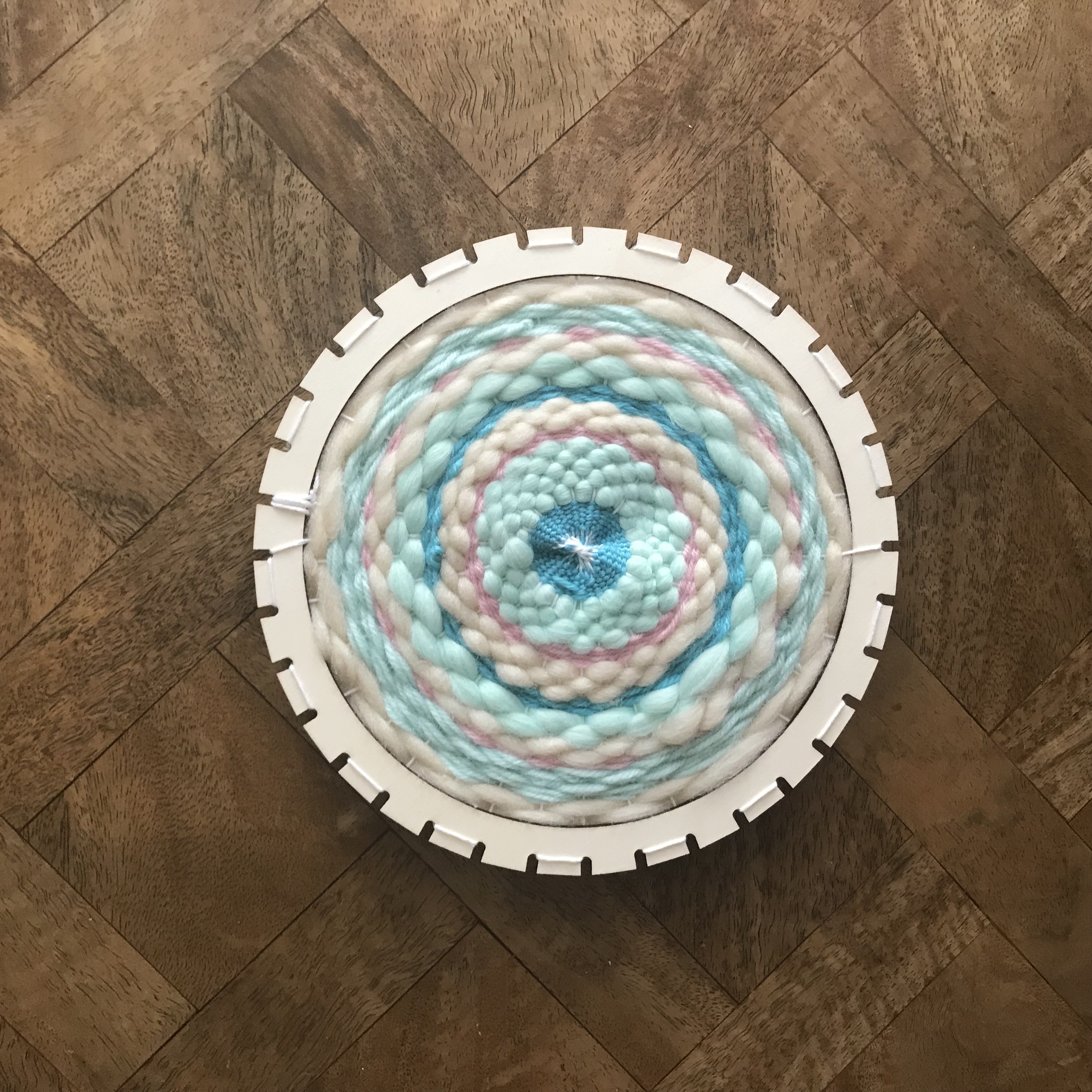 Yes, I was surprised too. I was deceived by the pastel and the fluffy yarn 🤣 But it is absolutely possible, that this mandala will calm everybody else down and that I am avers to weaving :-DDD I guess I am much more patient in garment making than with home decor....